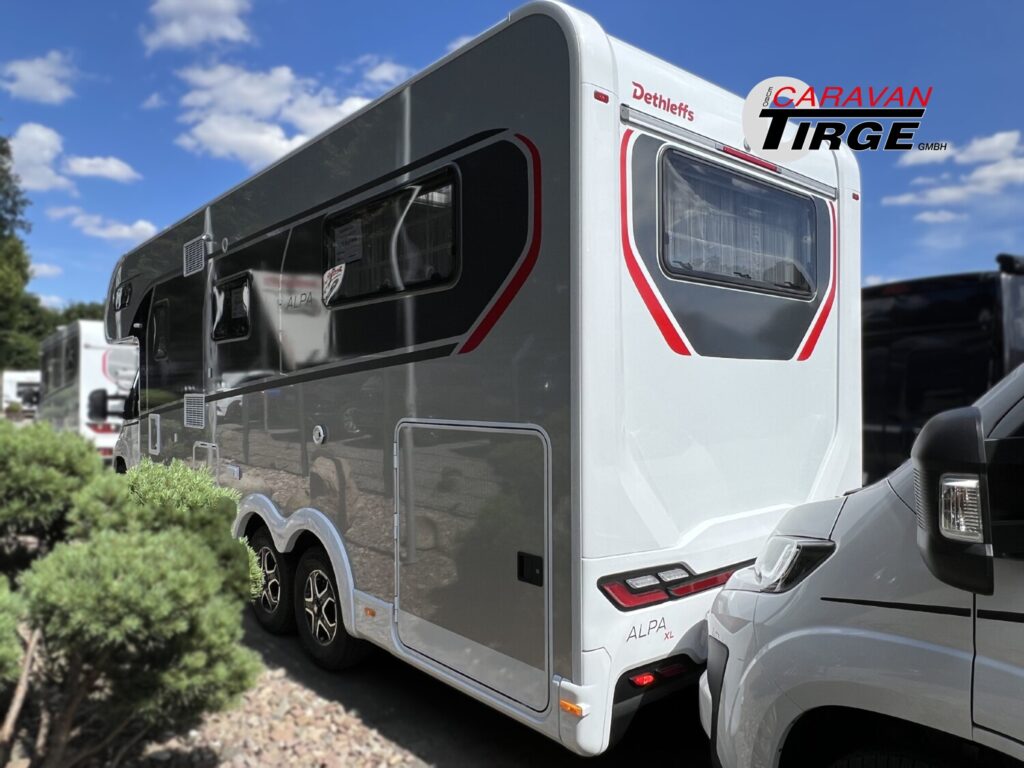 - GT Paket Silber ALPA A (Styling-Paket (Alkovenaufsatz), Panorama-Dachhaube 70 x 50 cm im Alkoven, Außendesign GT (Heckleuchtenträger mit schwarzem Diffusor, Skidplate „rot“), Seitenwände in Titansilber Metallic, Hoher charakteristischer Dethleffs Exklusiv Heckleuchtenträger mit ShapeLine LED Rückleuchten und 3. Bremsleuchte)