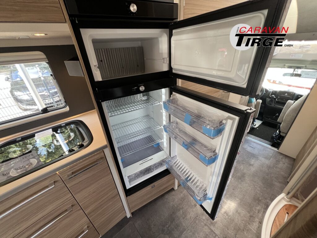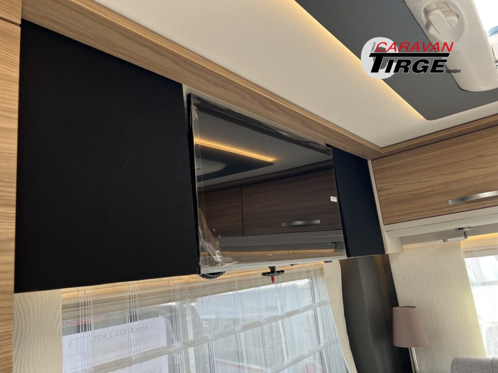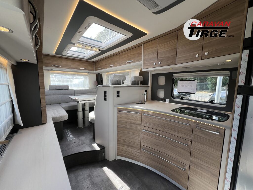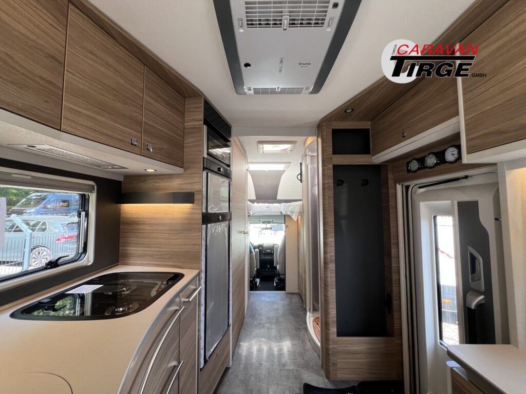 - Travel-Paket A 7820-2 (Light Moments: Indirekte Ambientebeleuchtung über den Dachstauschränken, Verdunklungsjalousien im Fahrerhaus, Dunstabzugshaube (Abluft) mit Zugluft-Stopper, Stützen (2 Stk.) für Anbau hinten, Automatische Gasflaschenumschaltung inkl. Crash Sensor, EisEx und Gasfilter, Rückfahrkamera (Einfachkamera), Panoramafenster (zweite Panoramadachhaube 75×105 cm längs über Sitzgruppe Heck) inkl. Baldachin und Raumleuchte, Zentralverriegelung für Fahrerhaus-, Wohnraumtüre und Garagentüren)