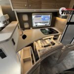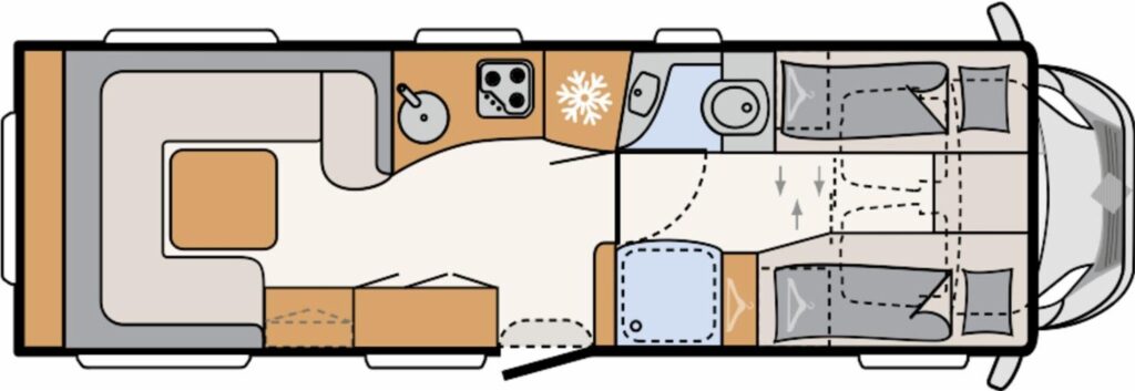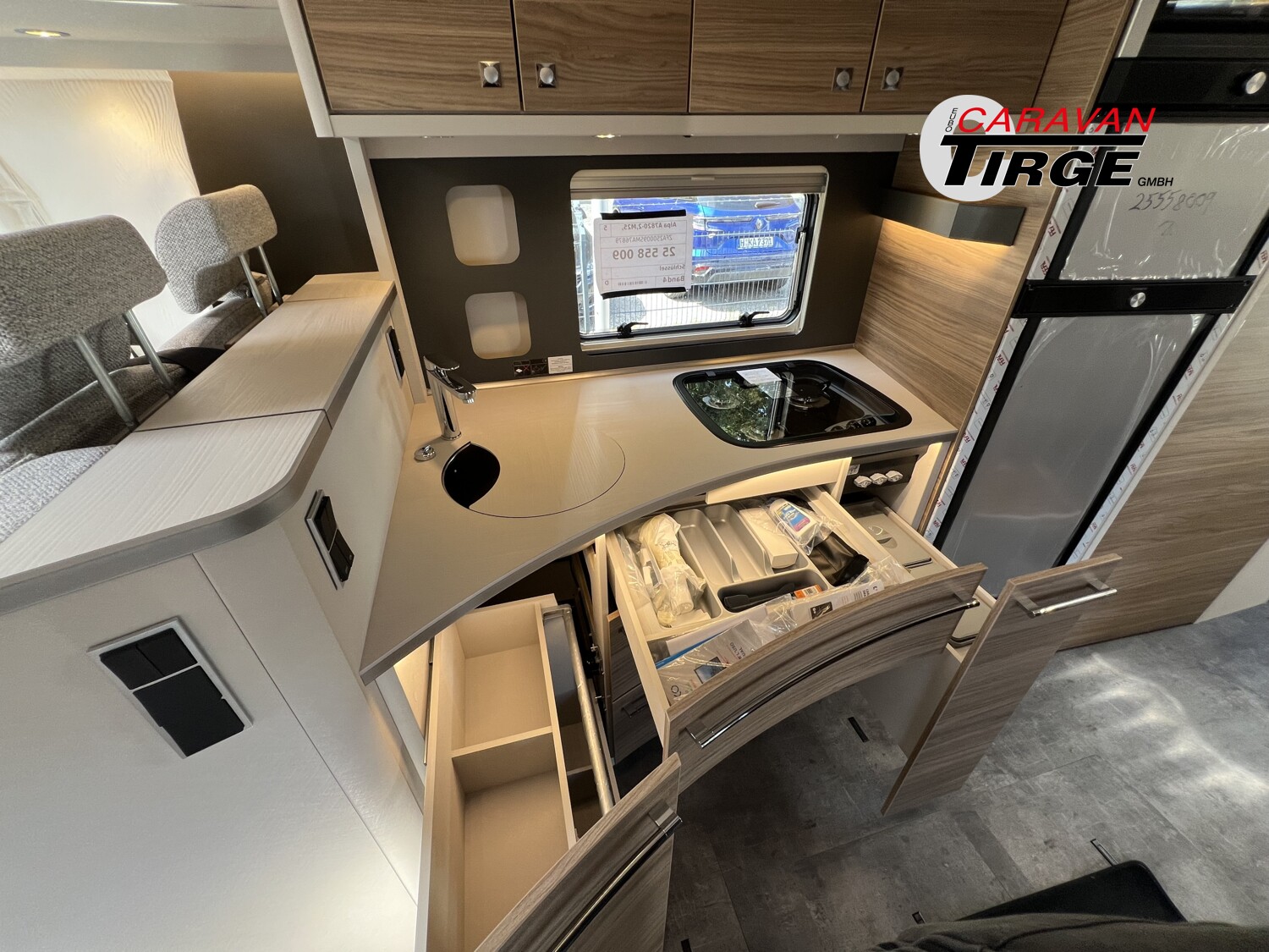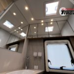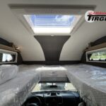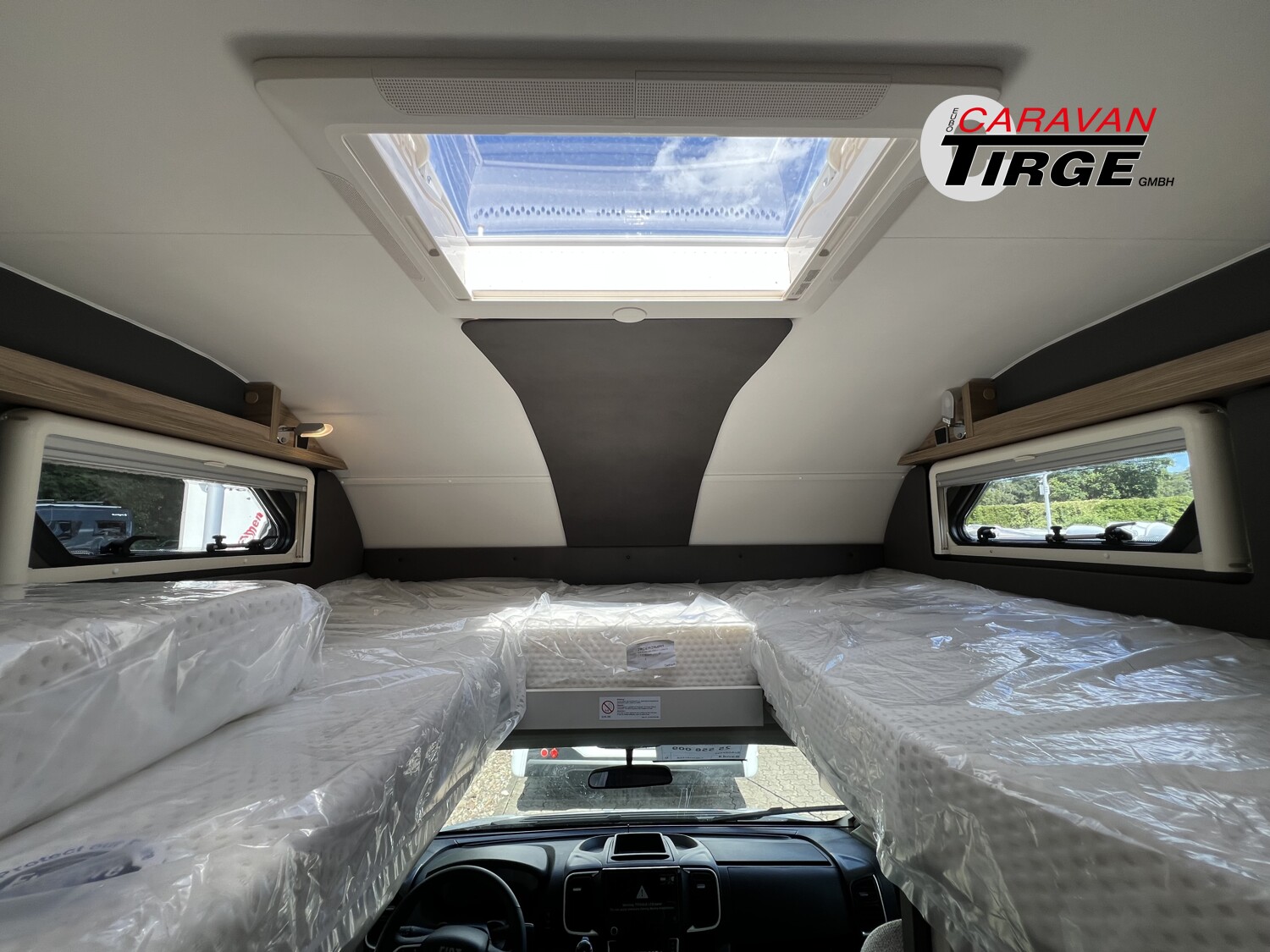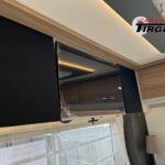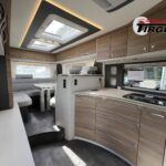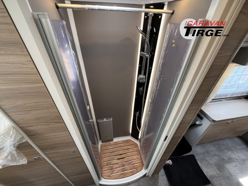 - Travel-Paket A 7820-2 (Light Moments: Indirekte Ambientebeleuchtung über den Dachstauschränken, Verdunklungsjalousien im Fahrerhaus, Dunstabzugshaube (Abluft) mit Zugluft-Stopper, Stützen (2 Stk.) für Anbau hinten, Automatische Gasflaschenumschaltung inkl. Crash Sensor, EisEx und Gasfilter, Rückfahrkamera (Einfachkamera), Panoramafenster (zweite Panoramadachhaube 75×105 cm längs über Sitzgruppe Heck) inkl. Baldachin und Raumleuchte, Zentralverriegelung für Fahrerhaus-, Wohnraumtüre und Garagentüren)