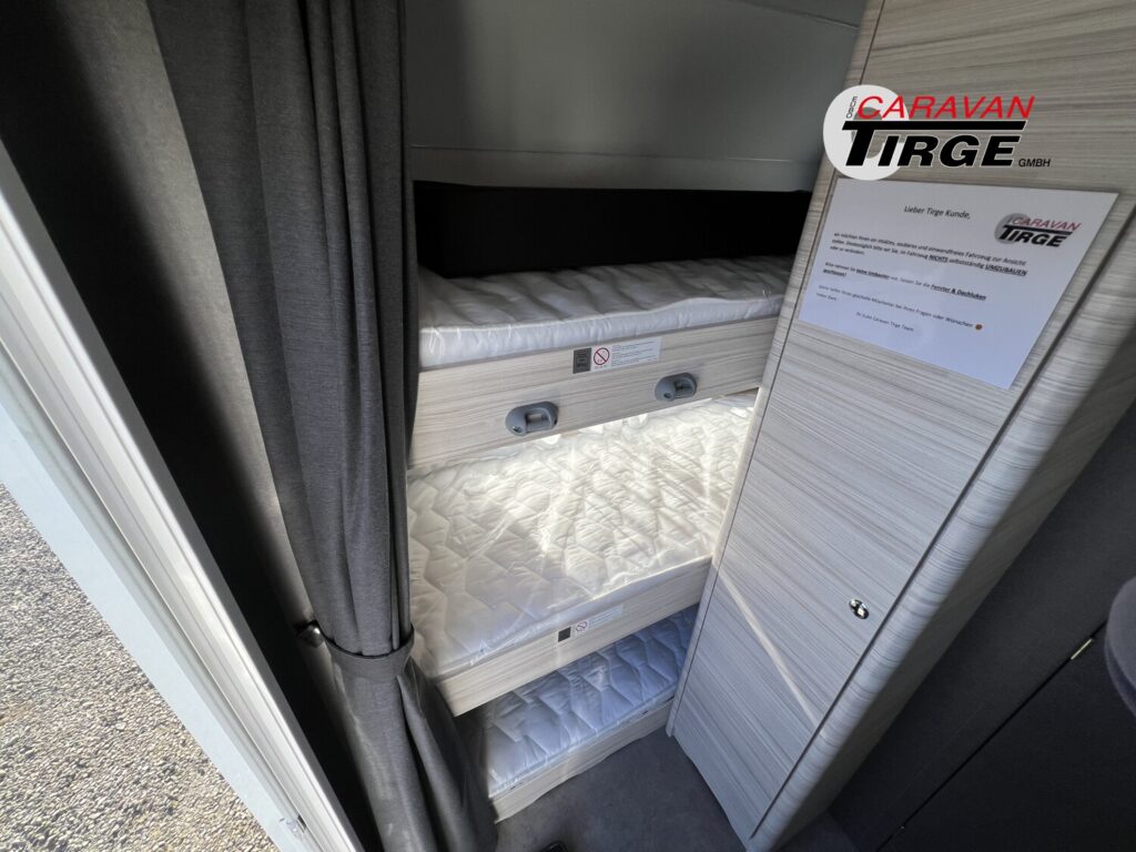 - Dynamik-Paket (Sicherheitskupplung, Stoßdämpfer, Großer 44 l Frischwassertank, Mobiler 22 l Abwassertank, Reserveradhalterung im Gasflaschenkasten, Stauraumklappe vorne rechts 1000×420 mm)