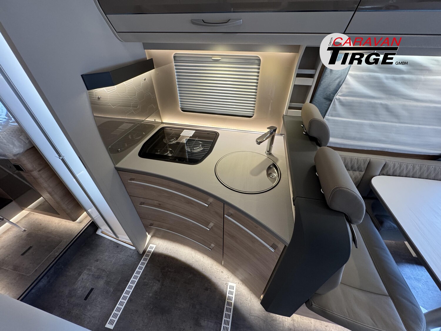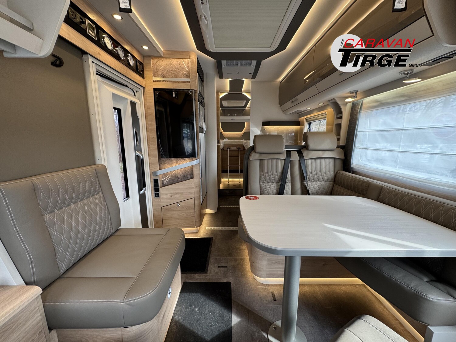 - 95 Jahre-Paket (EB/DBM) (Vorbereitung für Radiosystem inkl. Soundpaket im Fahrerhaus, Radioantenne DAB+ auf dem Dach montiert, Panorama-Dachhaube 75×105 cm im Wohnraum, Light Moments: Indirekte Ambientebeleuchtung über den Dachstauschränken, Stützen (2 Stk.) für Anbau hinten, Elektrischer Frontscheiben-Rollo, Automatische Gasflaschenumschaltung inkl. Crash Sensor und EisEx, Dunstabzugshaube (Abluft) mit Zugluft-Stopper, Integrierte Einlinsen Rückfahrkamera, Zentralverriegelung für Fahrerhaus-, Wohnraumtüre und Garagentüren, LED-Abblendlicht, Sonnenblenden seitlich, als Rollo für Fahrer und Beifahrer, Panorama-Dachhaube 70 x 50 cm im Schlafraum, Innendesign GT inkl. erweiterter Küchenrückwand, Außendesign GT Advance (Heckleuchtenträger mit schwarzem Diffusor, lackierung I-Front teilweise schwarz, Kühlergrill mit Chromkeder, Skidplate „rot“), Hoher charakteristischer Dethleffs Exklusiv Heckleuchtenträger mit ShapeLine LED Rückleuchten, in Heckspoiler integrierter 3. Bremsleuchte und eingezogener Heckwand, Light Moments: Beleuchteter Einstiegsgriff, Light Moments: Indirekte Beleuchtung im Badezimmer mit beleuchteter Duschkonsole, Light Moments: Sockelbeleuchtung im gesamten Fahrzeug, Light Moments: Durchgehender Baldachin mit indirekter Beleuchtung, Light Moments: Küchenrückwand beleuchtet, Light Moments: Indirekte dimmbare Wandflächen-Ambientebeleuchtung, Cassettenmarkise Omnistor 5,0 m (manuell), Automatische SAT Anlage 85 Twin mit 32 Smart TV inkl. Flachbildschirmhalter, Victron PowerAssist und PowerControl, Elektroblock EBL 102, Victron Bedienpaneel über der Aufbautür, Victron Energy MultiPlus Lade-/Wechselrichterkombination 1600W/70A, 168 Ah Lithium Batterie, Auflastung 4.500 kg, Kühlschrank (177 l), Türe beidseitig zu öffnen mit integriertem Backofen, Dethleffs Naviceiver inkl. DAB+, Truck Navigation, Wireless Apple CarPlay und Android Auto, Warmwasserheizung mit Warmwasserboiler, automatischem Ablassventil, Absperrventil für den Schlafraum und digitalem Bedienelement, Wärmetauscher für Warmwasserheizung, Isofix Kindersitzbefestigung für 3. und 4. Sitzplatz in Fahrtrichtung)