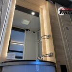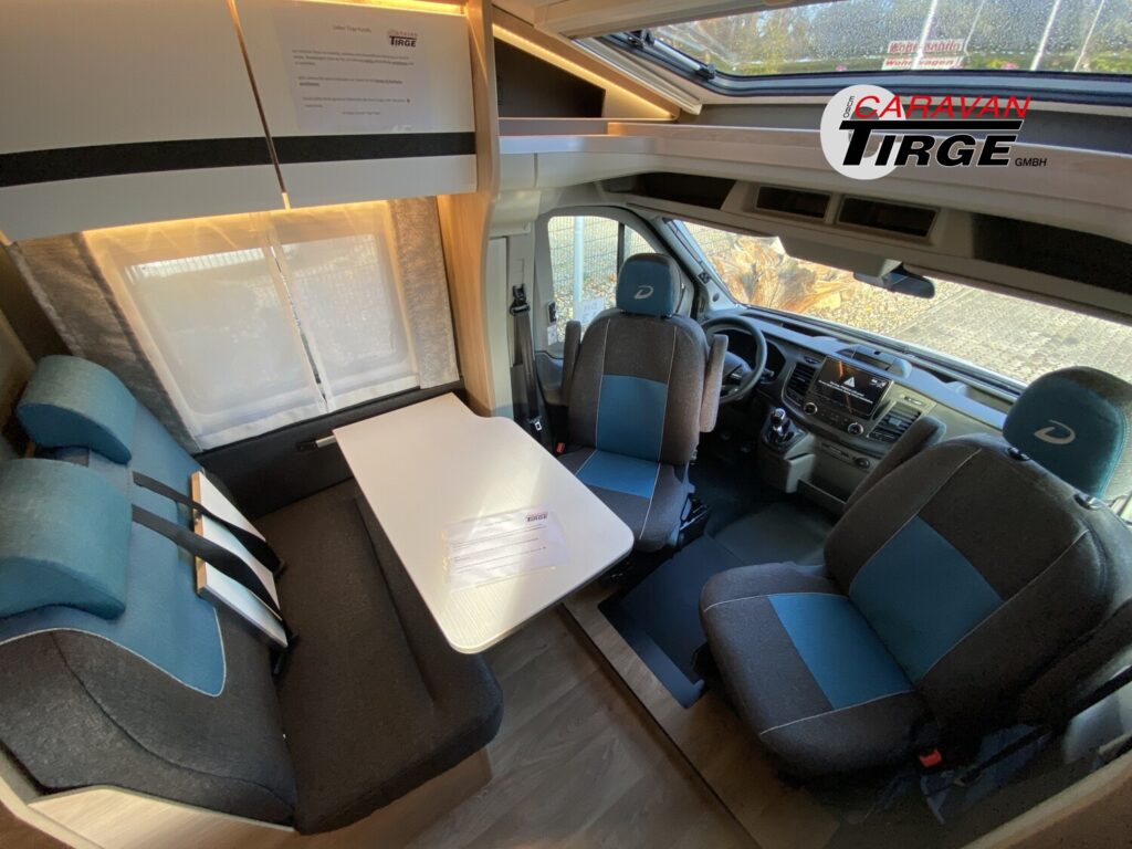- Comfort Paket T 45 (Klimaanlage inkl. Staub- und Pollenfilter, Handschuhfach mit Deckel, abschließbar, Innenraumpaket Trend-Line, Seitenschutzleisten in Wagenfarbe lackiert, Stoßfänger vorn in Wagenfarbe lackiert, Nebelscheinwerfer, Scheinwerfer mit statischem Abbiegelicht, Außenspiegel elektrisch einstellbar und beheizbar, Alufelge Ford 16 Zoll, schwarz, Frontscheibe, beheizbar, Scheibenwischer mit Regensensor, Notbrems-Assistent, aktiv (kamerabasiert), Fahrspur-Assistent mit Müdigkeitswarner, Fernlicht-Assistent und Fahrspurhalte-Assistent, Scheinwerfer-Assistent mit Tag/Nacht-Sensor, Wohnraumtür mit Fenster inkl. Verdunkelung und Zentralverriegelung (inkl. Fahrerhaustüre), Ausstellfenster in der T-Haube, Verdunklungsjalousien im Fahrerhaus, Panorama-Dachhaube 70 x 50 cm im Wohnraum, Wohnwelt Salerno inkl. Fahrer- und Beifahrer-Sitzbezug, Light Moments: Indirekte Wandflächen-Ambientebeleuchtung, Light Moments: Indirekte Ambientebeleuchtung über den Dachstauschränken, Stauraum-Türe links, Bettumbau Einzelbetten zu Doppelbett)