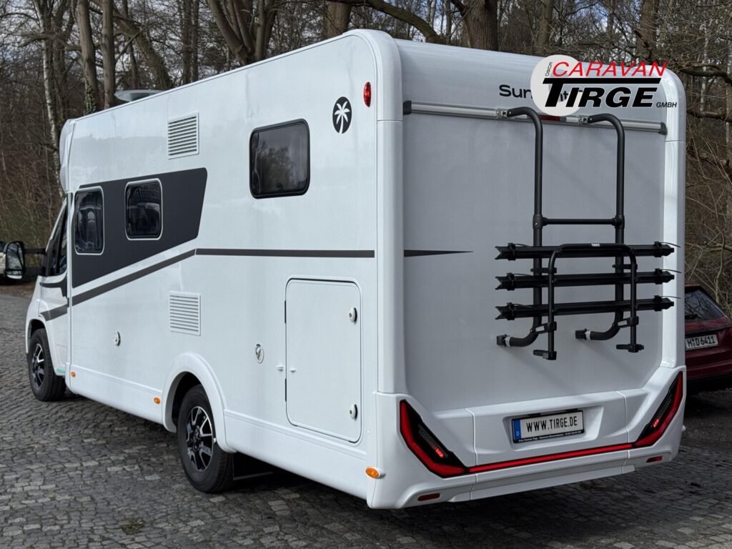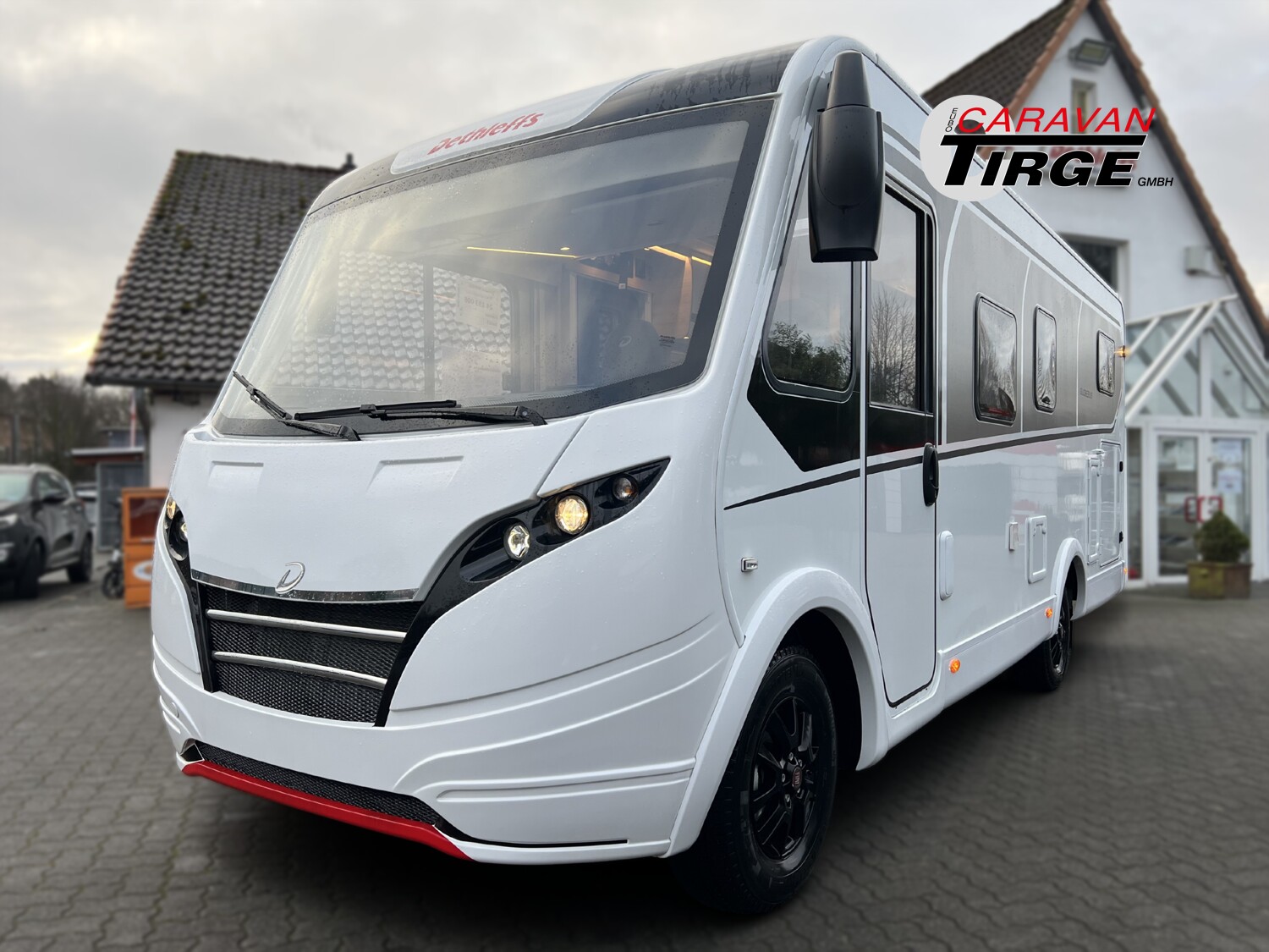 - Globebus GT Paket (Elektrische Feststellbremse, Lederlenkrad und Schaltknauf mit Ledermanschette, Armaturenbrett mit Aluminium Applikation, Fahrerhaus Klimaanlage automatisch, Dieseltank 90 Liter inkl. 19L AdBlue Tank, Lenkrad mit Bedienelementen, Wohnraumtür mit Fenster inkl. Verdunkelung und Zentralverriegelung (inkl. Fahrerhaustüre), Bord-Control-Panel Luxus, Fahrerhaustüre links, Panorama-Dachhaube 75×105 cm im Wohnraum, Höhen- und Neigeverstellbar inkl. zwei gepolsterte Armlehnen für Fahrer- und Beifahrersitz, Radioantenne DAB+ auf dem Dach montiert, Vorbereitung für Radiosystem inkl. Soundpaket im Fahrerhaus, Alufelge Fiat 16 Zoll, Außendesign GT (Lackierung I-Front teilweise schwarz, erweiterte Beklebung GT, Skidplate „rot“), Küchenrückwand „Grau Metallic“, Steckdosen und Schalter in Bicolor, Doppelverglaste Rahmenfenster mit Verdunklung & Mückenschutz, Hoher charakteristischer Dethleffs Exklusiv Heckleuchtenträger mit 3. Bremsleuchte)