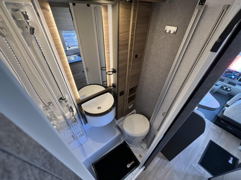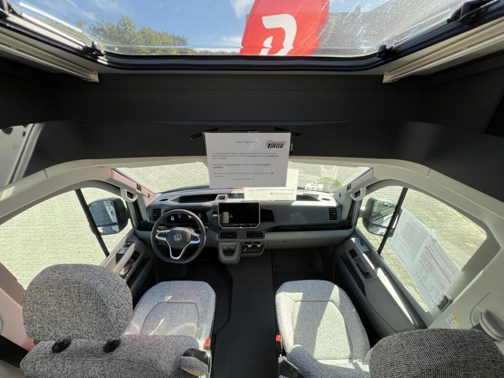 - First Edition Paket (Alufelge Hanma 18 Zoll schwarz matt, LoderTire AT 255/55 R18 (M+S Schneeflocke) inkl. Radkastenabdeckung VA, Höherlegung Vorder- und Hinterachse, LED Lightbar T-Haube, Verdunklungsjalousien im Fahrerhaus, Wohnraumtür mit Fenster inkl. Verdunkelung und Zentralverriegelung (inkl. Fahrerhaustür), Dachlüfter mit Ventilator, Doppelverglaste Rahmenfenster mit Verdunklung & Mückenschutz, Cassettenmarkise Omnistor 4.0 m inkl. LED Beleuchtung (manuell), Dachreling, Aufstiegsleiter für Dachreling inkl. Querträger, 2. Aufbaubatterie Dual Battery System (Lithium), 168 Ah, Light Moments: Indirekte Ambientebeleuchtung über den Dachstauschränken, Light Moments: Indirekte Wandflächen-Ambientebeleuchtung, Light Moments: Verkleidete Sitztruhenwange mit indirekter Beleuchtung, Light Moments: Fensterverkleidung im Wohnraum beleuchtet, Light Moments: Küchenrückwand beleuchtet, 5G WLAN Router inkl. 4×4 Dachantenne mit 32 Smart TV inkl. Flachbildschirmhalter, Raumhoher Kompressor Kühlschrank mit separatem Frosterfach (131 l), FirstEdition Außendesign (Bi-Color lackierung T-Haube, schwarze Kantenleisten), Außenlackierung Aufbau: Grau, Außenfarbe Chassis: Indiumgrau Metallic, Klimaanlage AirCare Climatic, LED-Hauptscheinwerfer mit LED-Tagfahrlicht, Licht- und Sicht-Paket, Vorbereitung für VW Connect und VW Connect Plus, Außenspiegel el. verstell- und beheizbar und integriertem Blinker, Assistenzpaket Advanced inkl. automaitscher Distanzregelung (ACC), intelligenter Speed-/ Travel-/ Lane-Assist, Navigationssytem Discover Pro mit 12″ Touch-Farbdisplay, Differentialsperre, Berganfahrhilfe / Abfahrhilfe, Handschuhfach abschließbar und beleuchtet)