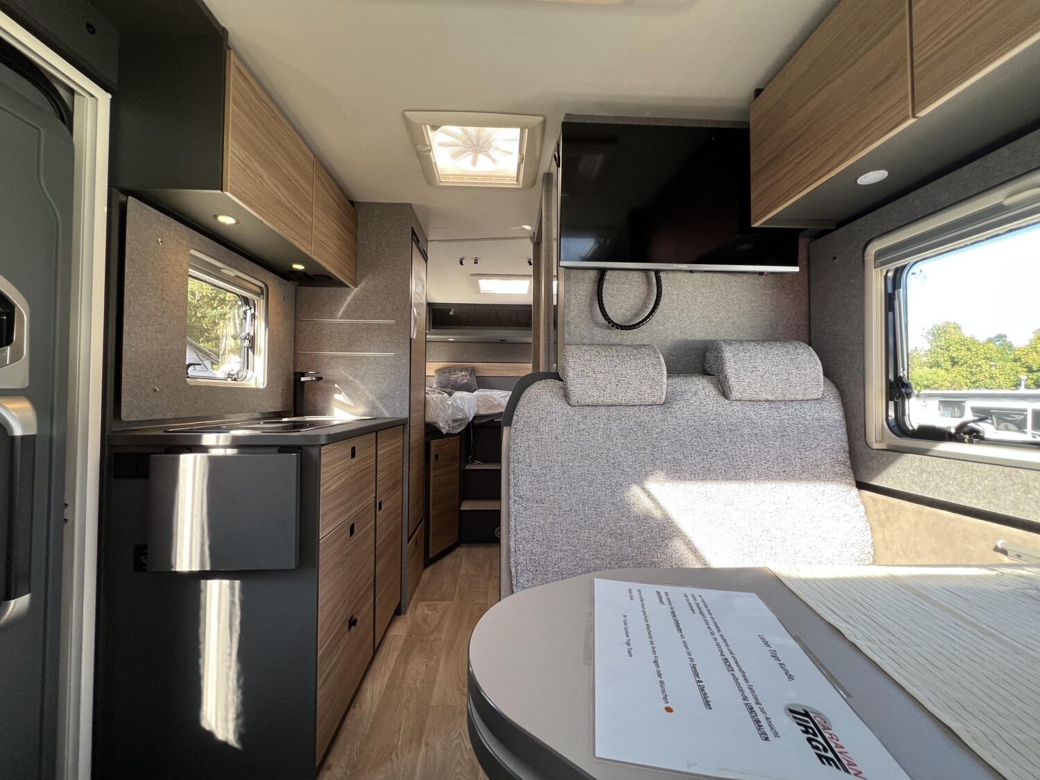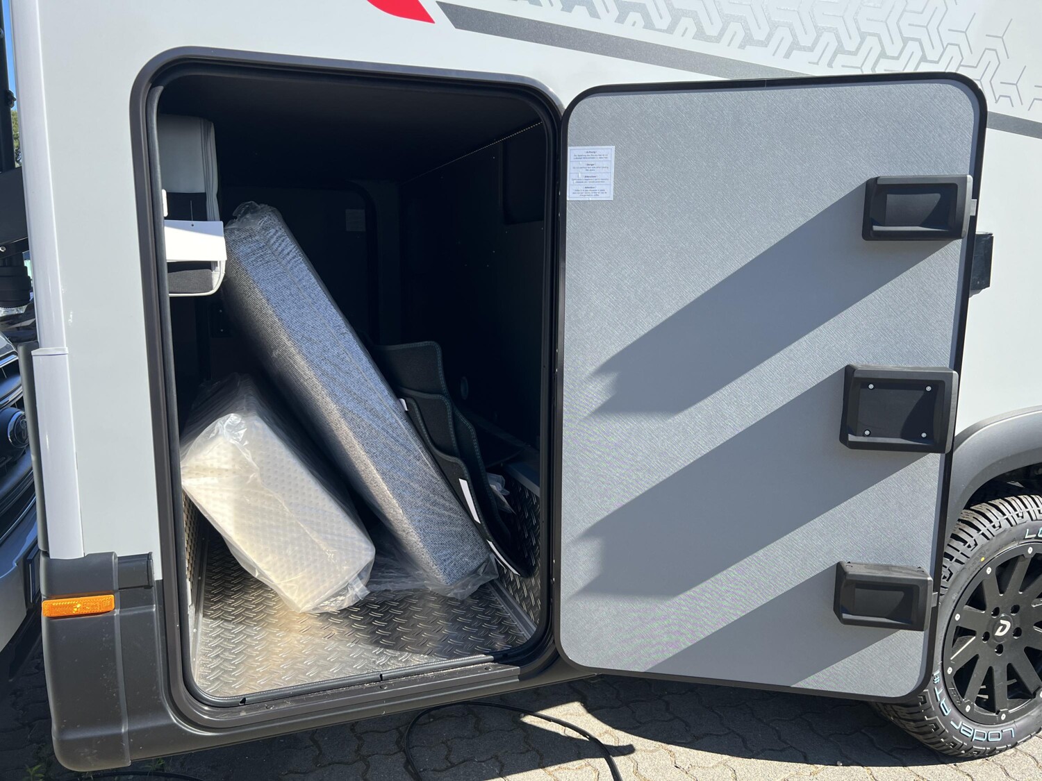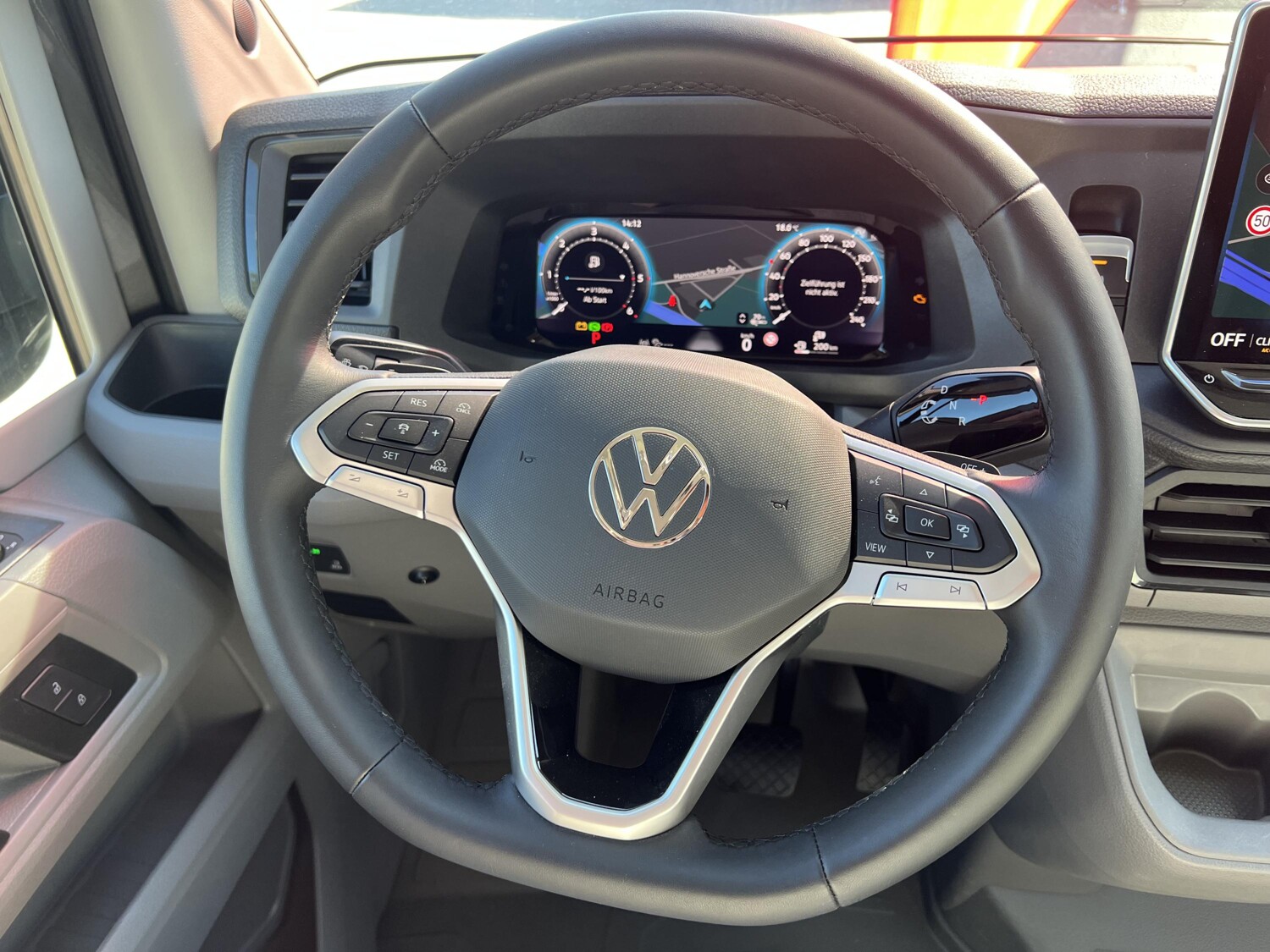 - First Edition Paket (Alufelge Hanma 18 Zoll schwarz matt, LoderTire AT 255/55 R18 (M+S Schneeflocke) inkl. Radkastenabdeckung VA, Höherlegung Vorder- und Hinterachse, LED Lightbar T-Haube, Verdunklungsjalousien im Fahrerhaus, Wohnraumtür mit Fenster inkl. Verdunkelung und Zentralverriegelung (inkl. Fahrerhaustür), Dachlüfter mit Ventilator, Doppelverglaste Rahmenfenster mit Verdunklung & Mückenschutz, Cassettenmarkise Omnistor 4.0 m inkl. LED Beleuchtung (manuell), Dachreling, Aufstiegsleiter für Dachreling inkl. Querträger, 2. Aufbaubatterie Dual Battery System (Lithium), 168 Ah, Light Moments: Indirekte Ambientebeleuchtung über den Dachstauschränken, Light Moments: Indirekte Wandflächen-Ambientebeleuchtung, Light Moments: Verkleidete Sitztruhenwange mit indirekter Beleuchtung, Light Moments: Fensterverkleidung im Wohnraum beleuchtet, Light Moments: Küchenrückwand beleuchtet, 5G WLAN Router inkl. 4×4 Dachantenne mit 32 Smart TV inkl. Flachbildschirmhalter, Raumhoher Kompressor Kühlschrank mit separatem Frosterfach (131 l), FirstEdition Außendesign (Bi-Color lackierung T-Haube, schwarze Kantenleisten), Außenlackierung Aufbau: Grau, Außenfarbe Chassis: Indiumgrau Metallic, Klimaanlage AirCare Climatic, LED-Hauptscheinwerfer mit LED-Tagfahrlicht, Licht- und Sicht-Paket, Vorbereitung für VW Connect und VW Connect Plus, Außenspiegel el. verstell- und beheizbar und integriertem Blinker, Assistenzpaket Advanced inkl. automaitscher Distanzregelung (ACC), intelligenter Speed-/ Travel-/ Lane-Assist, Navigationssytem Discover Pro mit 12″ Touch-Farbdisplay, Differentialsperre, Berganfahrhilfe / Abfahrhilfe, Handschuhfach abschließbar und beleuchtet)