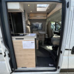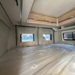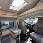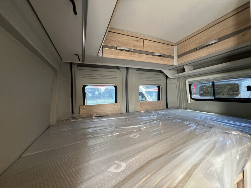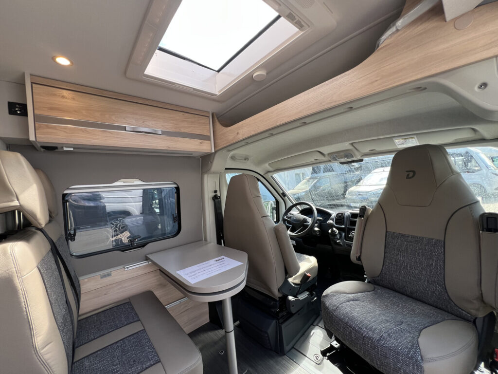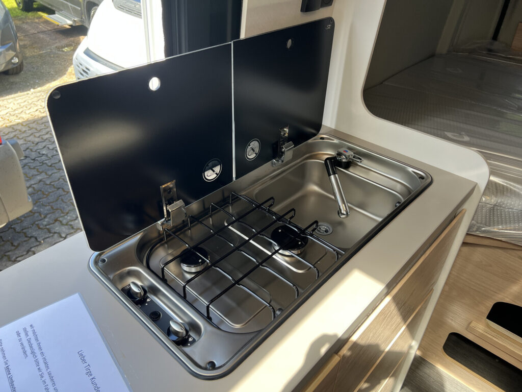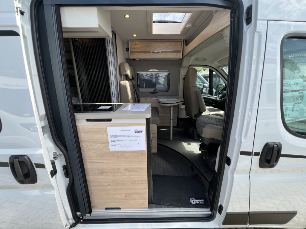 - Komfort Paket (540 DR) (Rahmenfenster, Schiebefenster mit Fliegenschutz und Verdunklungsrollo im Heck links, Markise 3,25 m(540), Innovativer Auszug unter dem Heckbett, Teppich auf Podest (gekettelt, lose verlegt), Vorzeltleuchte, Drehplatte für Tischerweiterung)