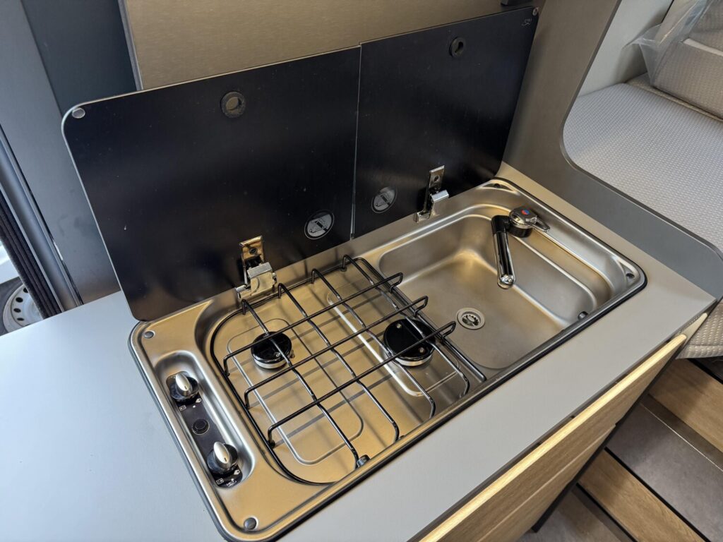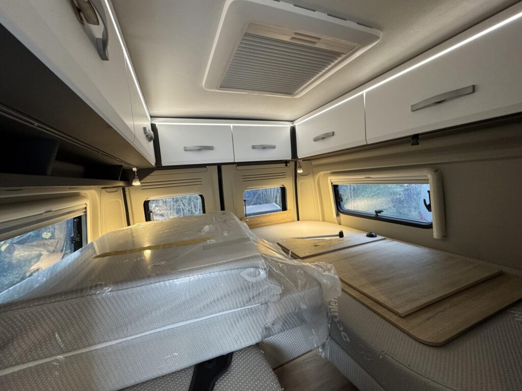 - Elektro Paket (Zusätzliche Doppel-USB-Steckdose im Bug links, 12-V-Steckdose im Heckbereich links unten, 230-V-Steckdose im Oberschrank Bug links (Sitzgruppe), Indirekte Beleuchtung, LED-Lichtröhre in der Küche, Vorbereitung Solarmodule)