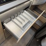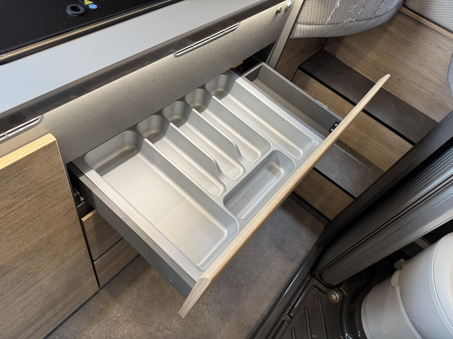 - Elektro Paket (Zusätzliche Doppel-USB-Steckdose im Bug links, 12-V-Steckdose im Heckbereich links unten, 230-V-Steckdose im Oberschrank Bug links (Sitzgruppe), Indirekte Beleuchtung, LED-Lichtröhre in der Küche, Vorbereitung Solarmodule)