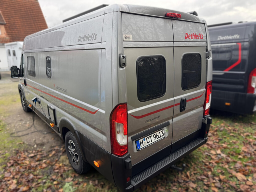 - 90-Jahre-Paket (Auflastung 3.499 kg zul. Gesamtgewicht, Leichtmetallfelge Alu light 16 Zoll – silber, Lackierter Stoßfänger in Wagenfarbe, Captain Chair mit zwei Armlehnen, drehbar, Lederlenkrad und -schaltknauf, Techno Trim: Alu-Applikationen auf den Lüftungsdüsen, DAB Dachantenne mit Lautsprecher und Radiovorbereitung, Rahmenfenster, Fenster im Heck rechts, Fenster im Bad, Zusätzliche Doppel-USB-Steckdose im Bug links (bereits bei technischen Daten inkludiert), Kabelvorbereitung für Rückfahrkamera, TV-Vorbereitung 12 V, SAT-Anschluss, TV-Halter, Vorbereitung Solarmodule, Indirekte Beleuchtung, dimmbar, Vorzeltleuchte, Markise, Drehplatte für Tischerweiterung, Fahrerhausteppich, Teppich auf Podest (gekettelt, lose verlegt), LED-Tagfahrlicht (Globetrail 600))