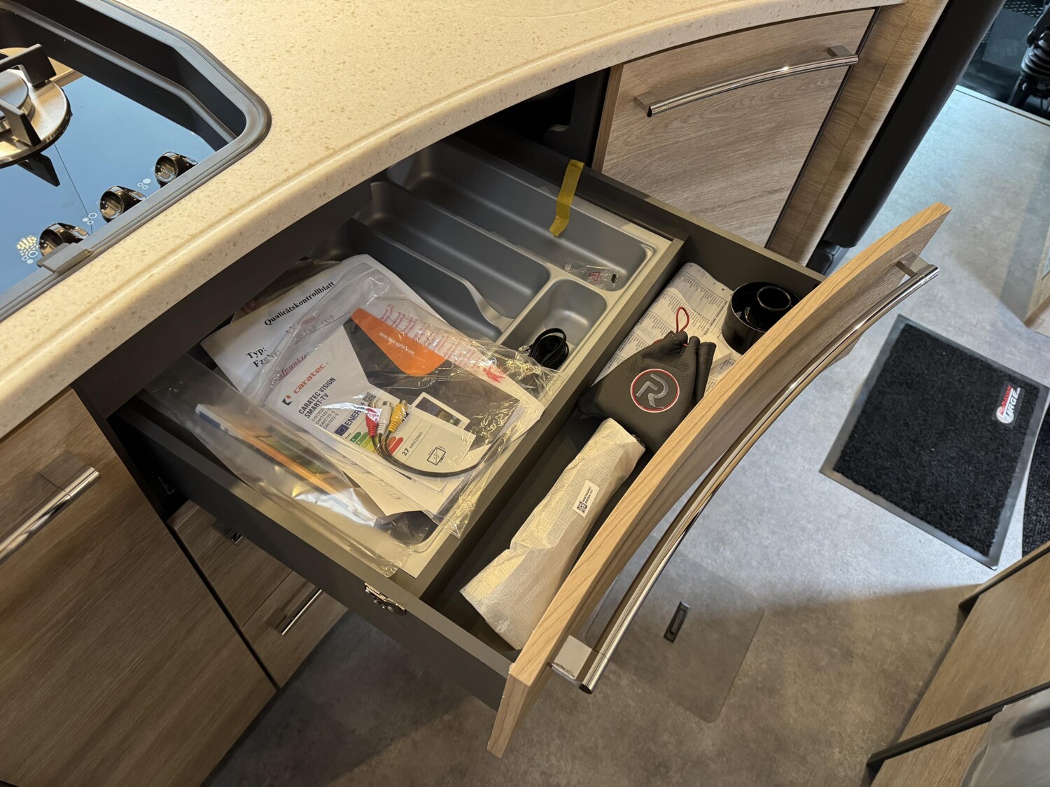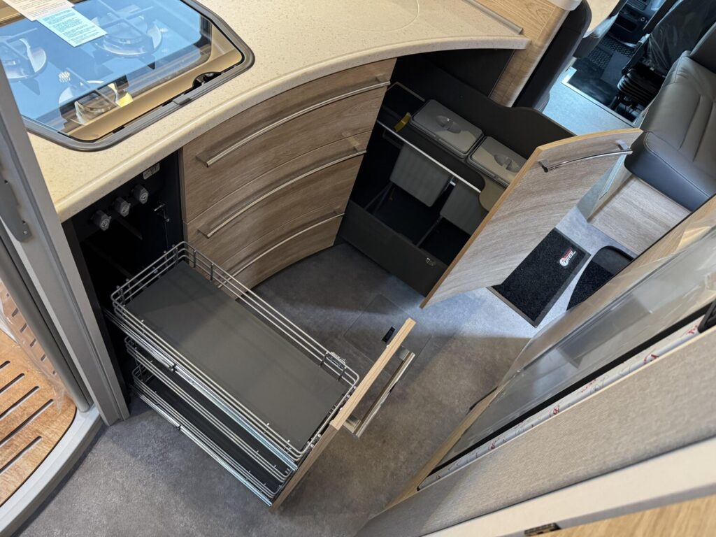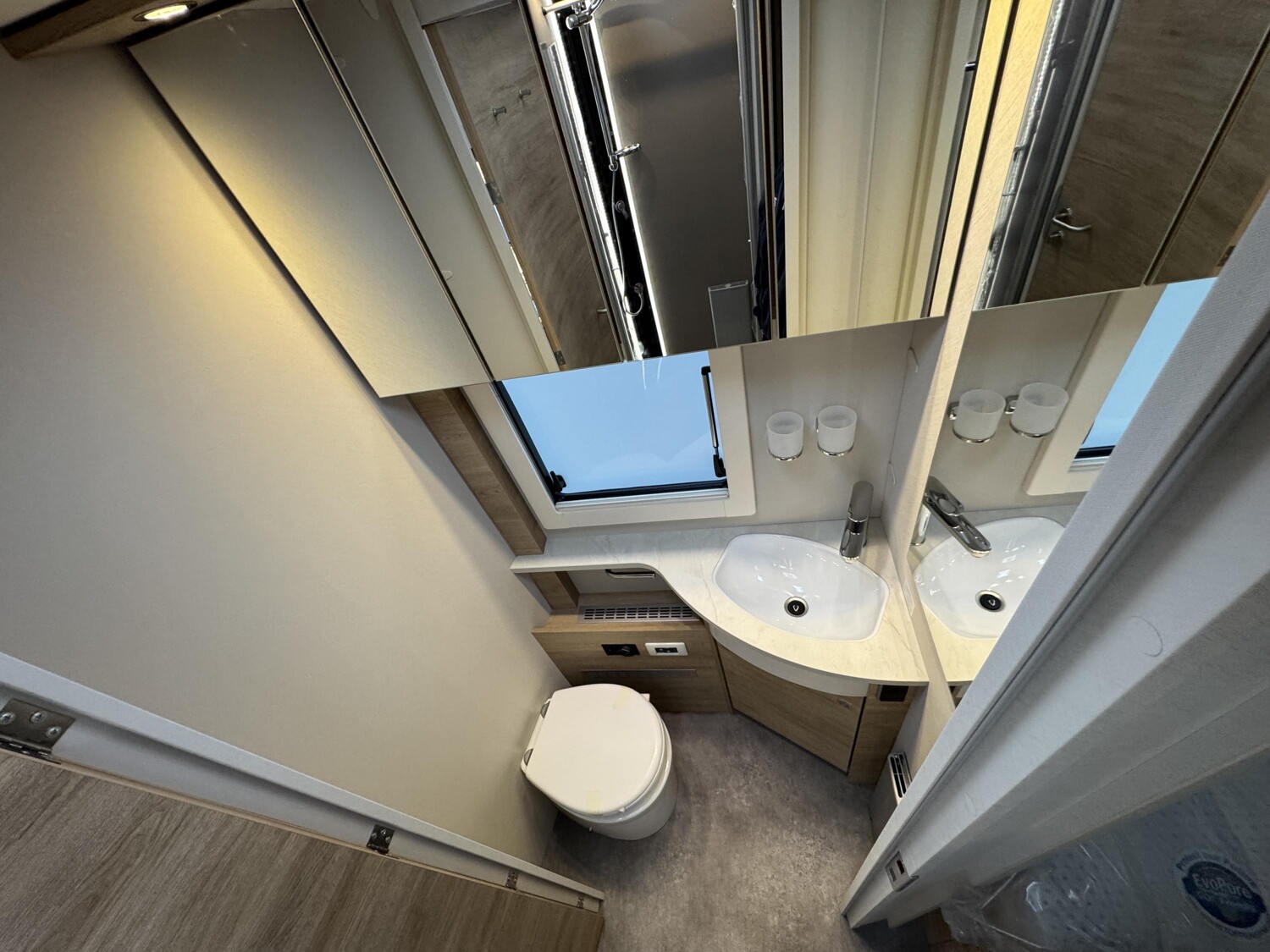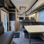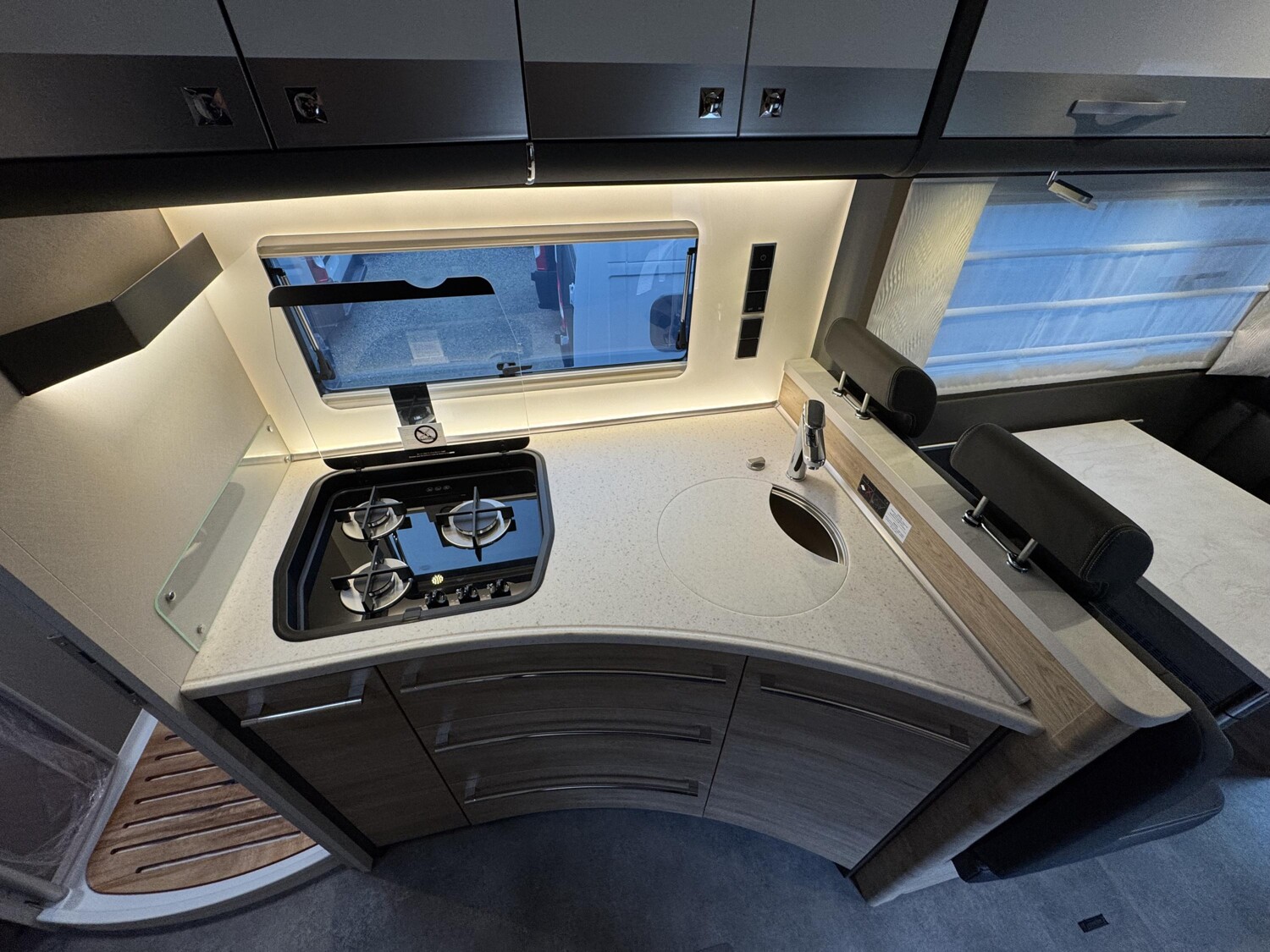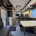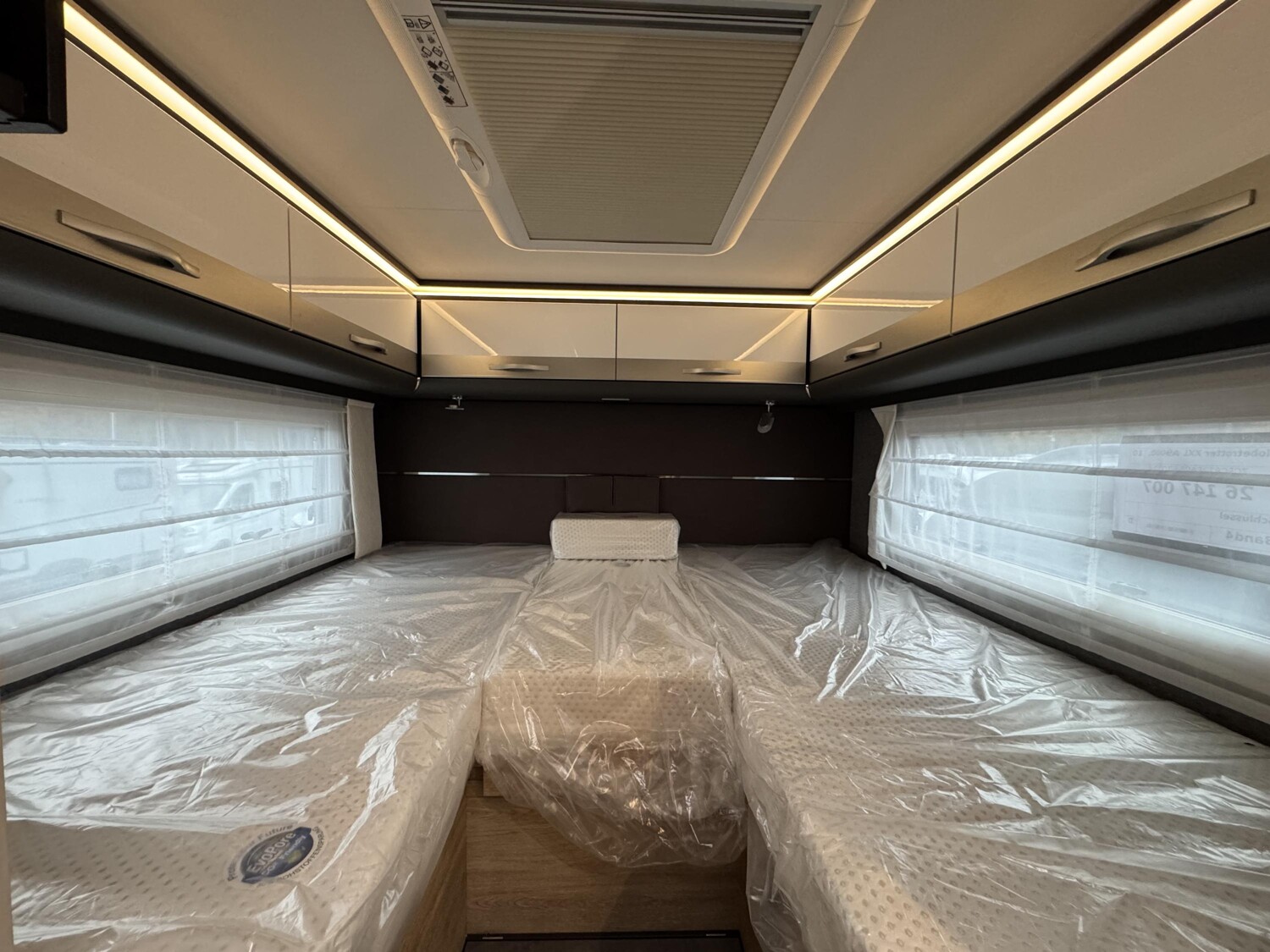 - Travel-Paket XXL (Teppich gekettelt, lose verlegt, Light Moments: Indirekte Ambientebeleuchtung über den Dachstauschränken, Dachklimaanlage, Panorama-Dachhaube 75×105 cm im Wohnraum, Stützen (2 Stk.) für Anbau hinten, Integrierte Einlinsen Rückfahrkamera)