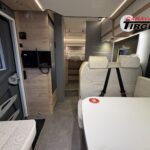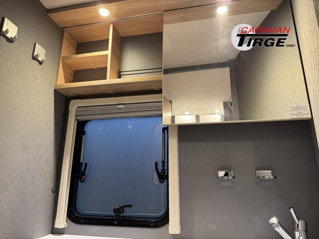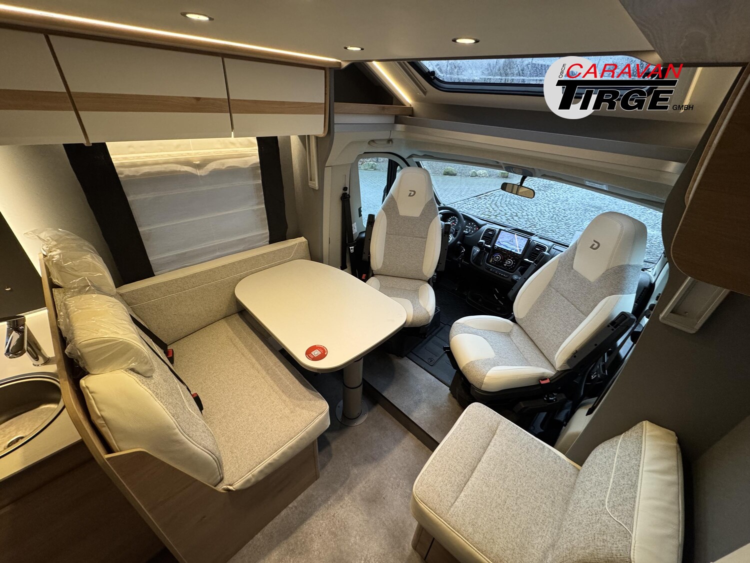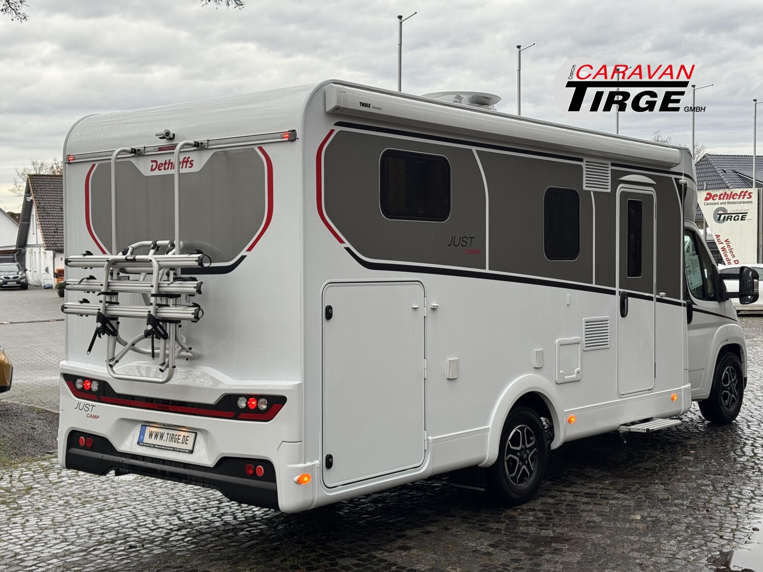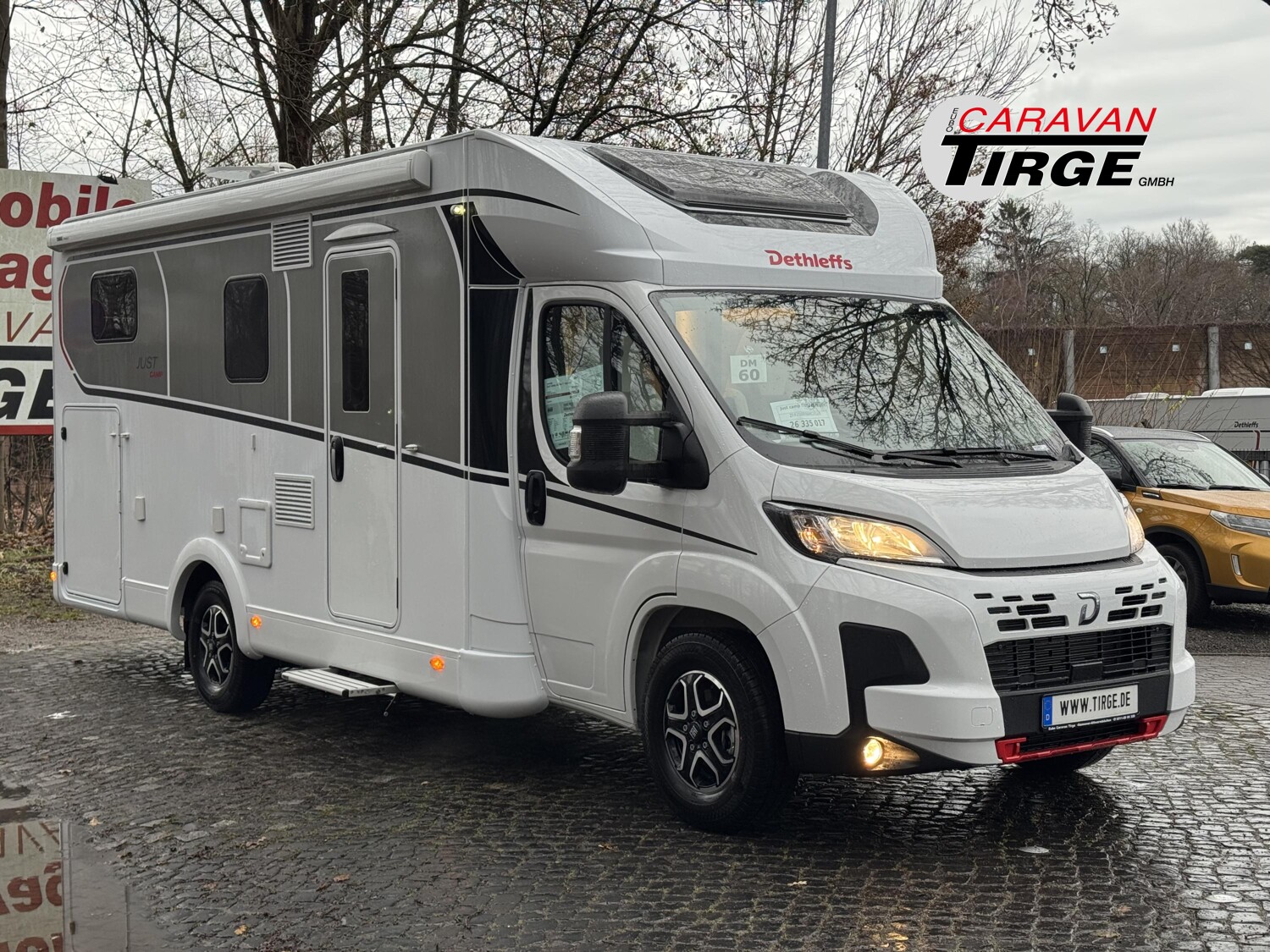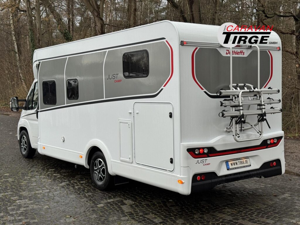 - Active-Paket T 7052 EB (Ausstellfenster in der T-Haube, Wohnraumtür mit Fenster inkl. Verdunkelung und Zentralverriegelung (inkl. Fahrerhaustür), Verdunklungsjalousien im Fahrerhaus, Panorama-Dachhaube 70 x 50 cm im Wohnraum, Light Moments: Indirekte Ambientebeleuchtung über den Dachstauschränken, Light Moments: Indirekte Wandflächen-Ambientebeleuchtung, Stauraum-Türe links, Doppelverglaste Rahmenfenster mit Verdunklung & Mückenschutz inkl. verkleidete Küchenrückwand, Textilleder-Wohnwelt Heron, Vorbereitung Solar, Light Moments: Küchenrückwand beleuchtet, Vorbereitung Dach-Klimaanlage, Digitales Bedienelement für Warmluftheizung, Dethleffs Naviceiver inkl. DAB+, Truck Navigation, Wireless Apple CarPlay und Android Auto, Rückfahrkamera (Einfachkamera), Vorbereitung SAT-Anlage, Active Außendesign (Heckleuchtenträger mit schwarzem Diffusor, erweiterte Beklebung, Skidplate „rot“), Bettumbau Einzelbetten zu Doppelbett, Gemütliche L-Sitzgruppe mit freistehendem, absenkbarem Tischfuß und 2 integrierte 3-Punkt-Gurte, Fenster im Badezimmer, Duschrost, Cassettenmarkise Omnistor 4,5 m (manuell))