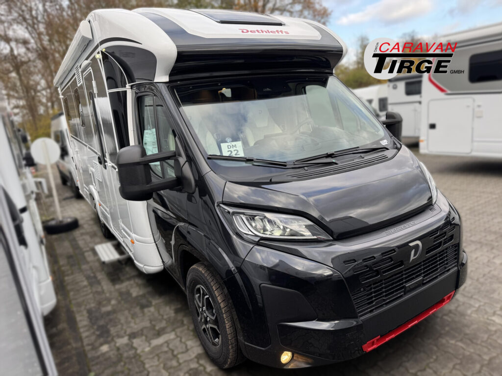 - Active-Paket T 6817, 7057 EB (Wohnraumtür mit Fenster inkl. Verdunkelung und Zentralverriegelung (inkl. Fahrerhaustür), Verdunklungsjalousien im Fahrerhaus, Light Moments: Indirekte Ambientebeleuchtung über den Dachstauschränken, Light Moments: Indirekte Wandflächen-Ambientebeleuchtung, Light Moments: Küchenrückwand beleuchtet, Light Moments: Indirekte Beleuchtung im Badezimmer mit beleuchteter Duschkonsole, Light Moments: Eingangsmodul mit indirekter Beleuchtung, Light Moments: Verkleidete Sitztruhenwange mit indirekter Beleuchtung, Gemütliche L-Sitzgruppe mit freistehendem, absenkbarem Tischfuß und 2 integrierte 3-Punkt-Gurte, Bettumbau Einzelbetten zu Doppelbett, Außenfarbe Chassis Schwarz Metallic, Außendesign GT (Heckleuchtenträger mit schwarzem Diffusor, erweiterte Beklebung, Skidplate „rot“), Integrierte Einlinsen Rückfahrkamera, Vorbereitung SAT-Anlage, Vorbereitung Dach-Klimaanlage, Vorbereitung Solar, Duschrost, Dethleffs Naviceiver inkl. DAB+, Truck Navigation, Wireless Apple CarPlay und Android Auto, Textilleder-Wohnwelt Heron, Fenster im Badezimmer)