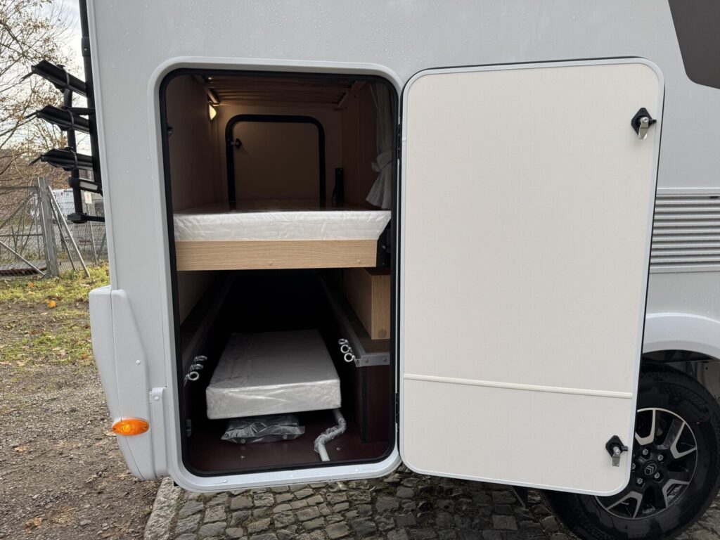 - Erweiterte Serienausstattung (Citroën Jumper 3.500 kg, 2.2 BlueHDi, 103 kW, 140 PS Euro 6, 6-Gang-Schaltgetriebe, Kabelvorbereitung für Rückfahrkamera, 2. Außenstauraumklappe (Größe modellabhängig), Sicherheitspaket Alkoven: 2 Kopfstützen und 2 Beckengurte mittl. Sitzbank entgeg. Fahrtrichtung (zul. Personenzahl ergibt sich aus Fahrzeuggewicht)*, Green Trail, Großer Kühlschrank 156 l mit separatem Frosterfach 29 l, Basic Paket (Bridge Light, Komfort Eingangstür mit Fenster, Fliegengittertür einteilig, Panoramadachhaube 70 x 50 cm, Klarglasdachhaube 40 x 40 cm), Paket Alufelgen Bi-Color (Lenkrad und Schaltknauf in Lederausführung, Luftauslässe mit Applikationen Silber Techno-Trim, 16 Zoll Alufelgen Bi-Color))