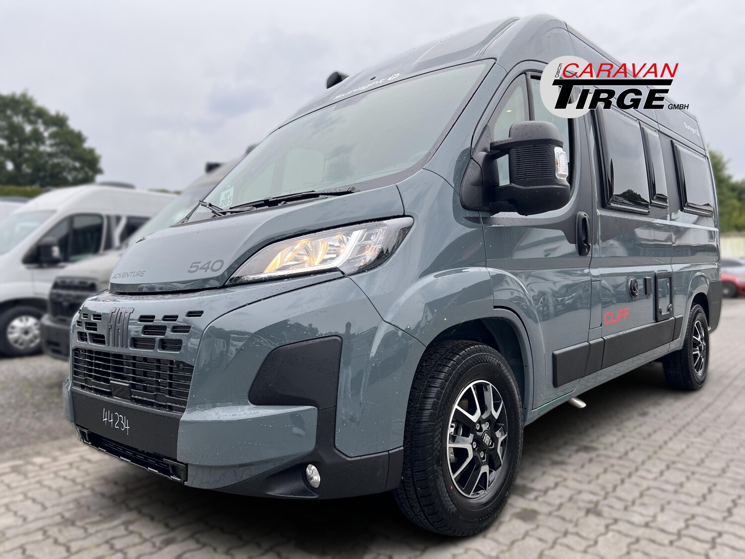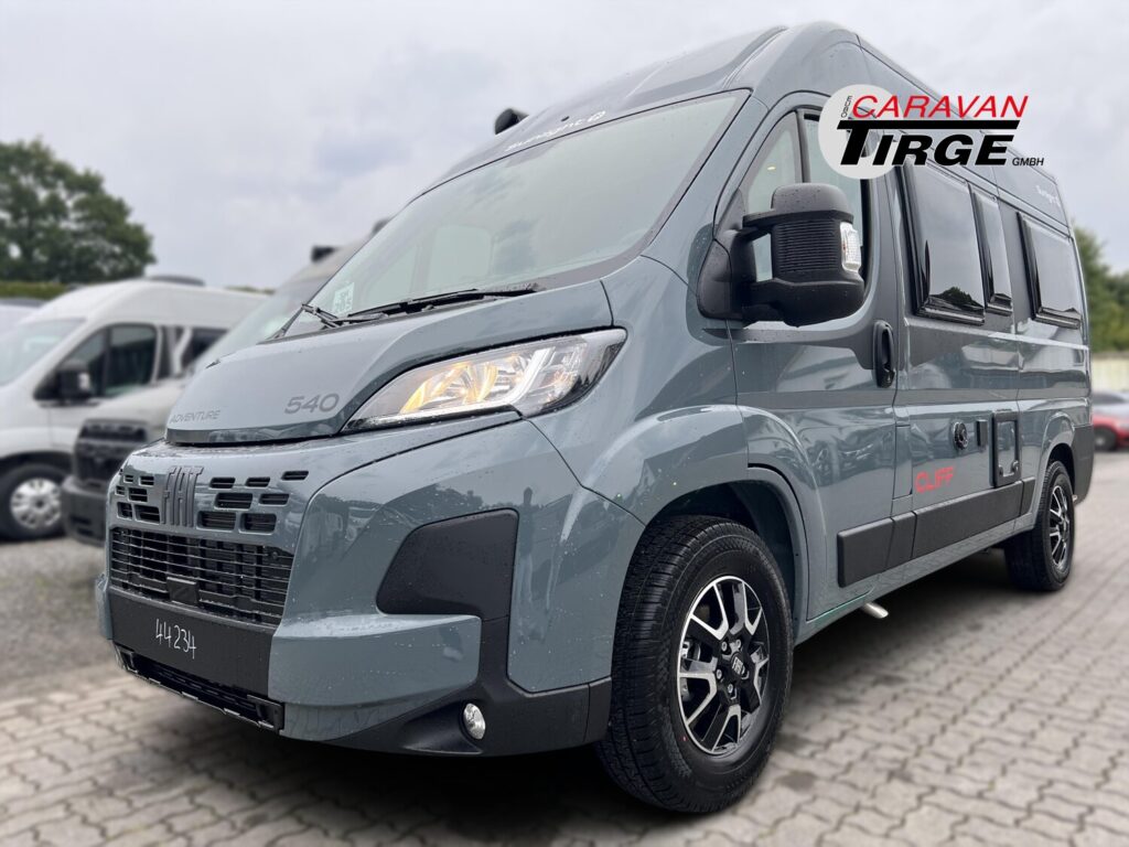 - Adventure Ausstattung 540 (Fiat Ducato 3.500 kg | 2.2 | 103 kW | 140 PS Euro 6 | 6-Gang-Schaltgetriebe, Fiat Weiß, Adventure Beklebung, Wohnwelt Adventure, Markise (schwarz), Panoramadachhaube 70 x 50 cm, Duschausstattung, Fenster im Bad, Kleiderstange in der Nasszelle, Breite Einstiegsstufe, Drehplatte für Tischerweiterung an der Sitzgruppe, Stoßfänger lackiert, Skid Plate Schwarz, Nebelscheinwerfer, Lenkrad & Schaltknauf in Lederausführung, Luftauslässe mit Applikationen Silber (Techno-Trim), 16″ Alufelgen Bi-Color)