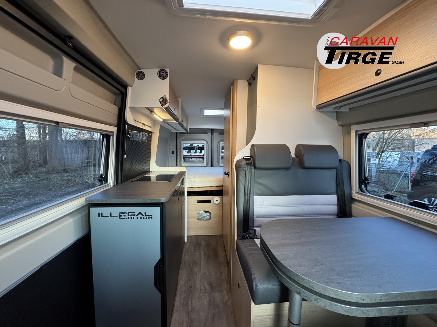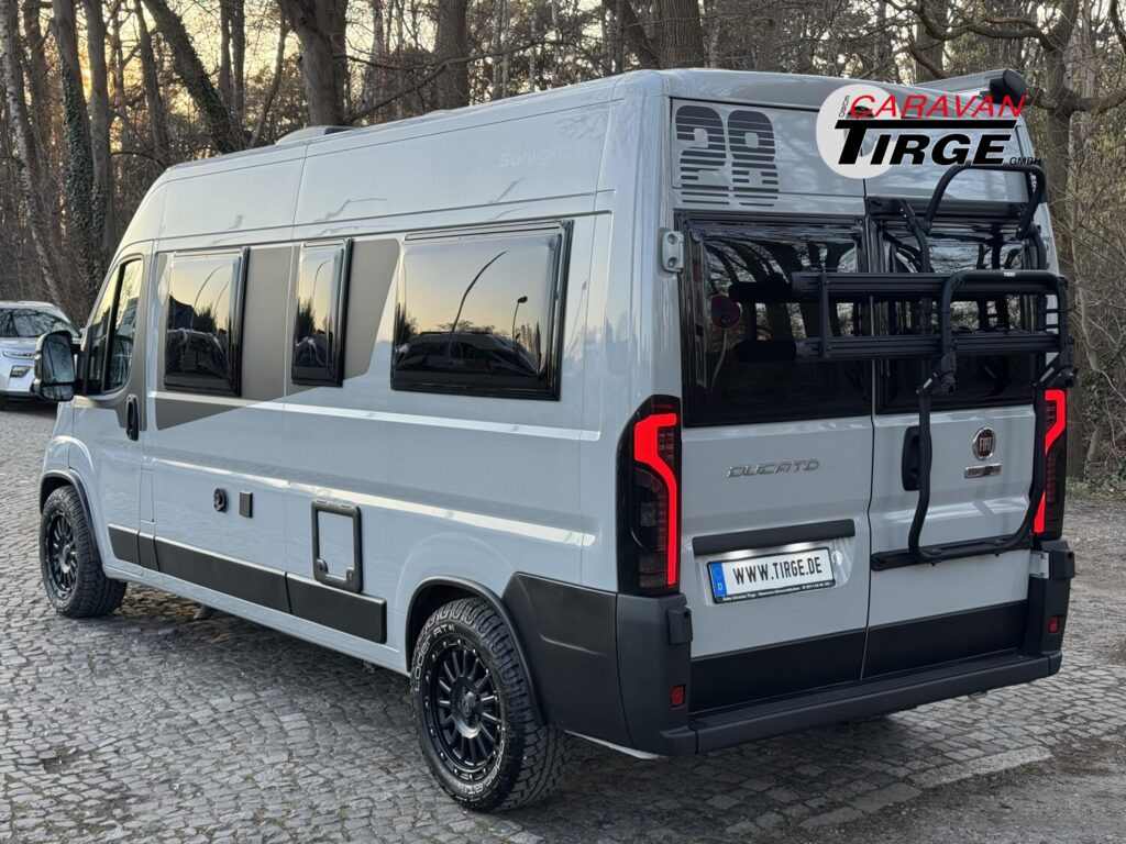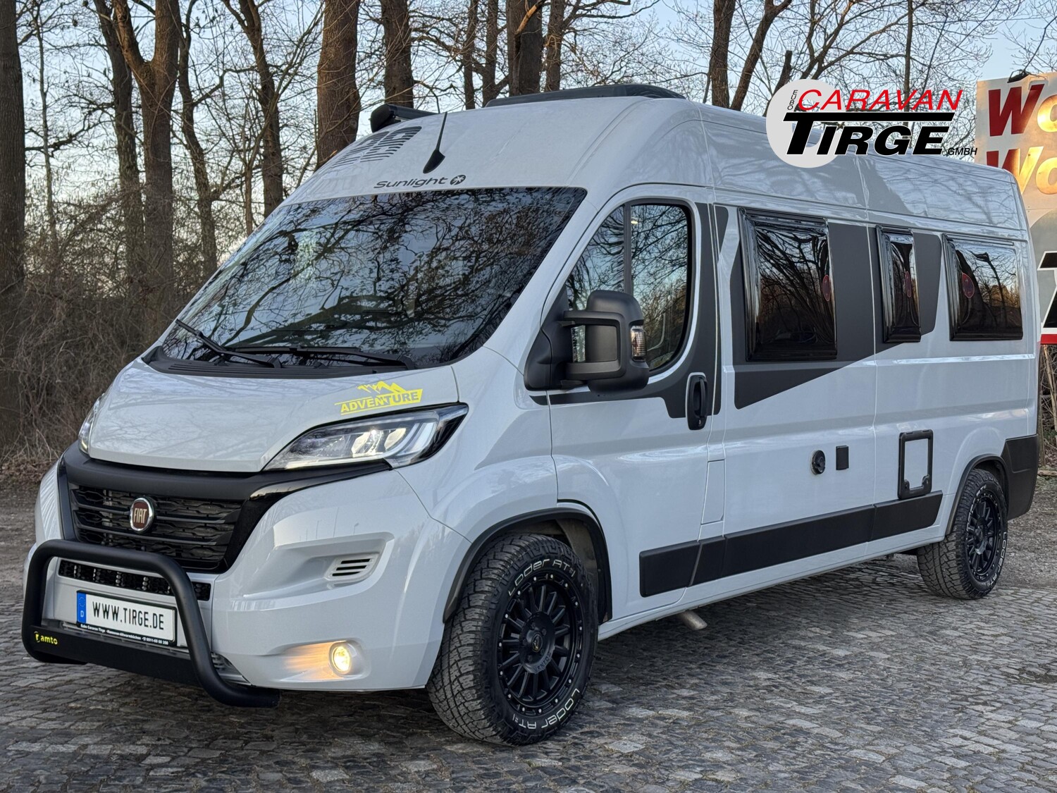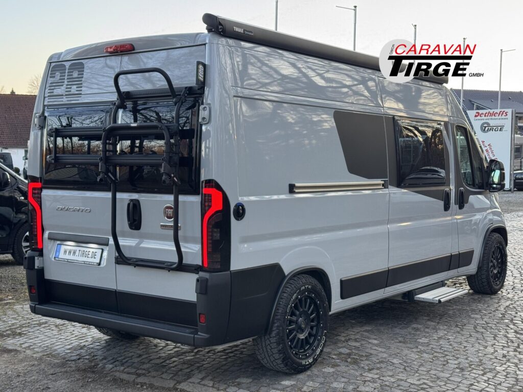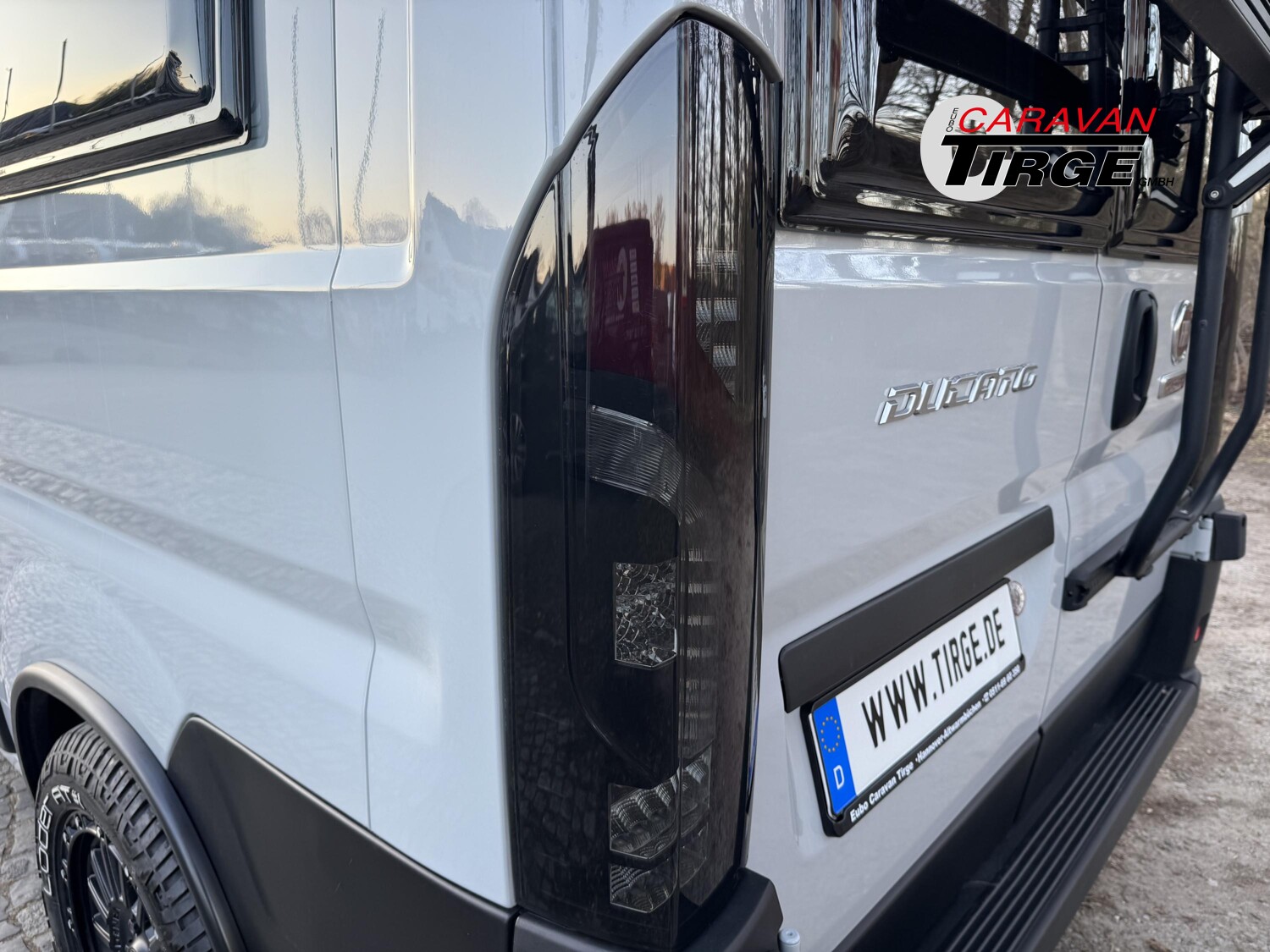 - Adventure Edition (Fiat Ducato 3,5 t – 2.2 Multijet – 103 kW / 140 PS Euro 6 – 6-Gang-Schaltgetriebe, Schwarz metallic, Stoßfänger lackiert 2), 16″ Alufelgen Original FIAT für Light-Chassis, Adventure Abklebung, Wohnwelt Adventure, Scheinwerfer mit schwarzem Rahmen, Kabelvorbereitung für Rückfahrkamera, Dieseltank 90l, Markise, Basic Paket (Radiovorbereitung mit Lautsprechern und Dachantenne (DAB), Beifahrersitz höhenverstellbar, Captain-Chair inkl. 2 Armlehnen, Dachhaube Midi- Heki 700 × 500 über Sitzgruppe, Duschausstattung (Brausekopf ausziehbar, Duschvorhang, Führungsschiene, Brausehalter), Fenster im Bad, Fahrerhausverdunklung aus Stoff, Kleiderstange in der Nasszelle, Breite Einstiegsstufe, Fliegengittertüre, Drehplatte für Tischerweiterung an der Sitzgruppe), Style Paket (Lenkrad & Schaltknauf in Lederausführung, Luftauslässe mit Applikationen Silber (Techno-Trim), Kühlergrill schwarz glänzend))