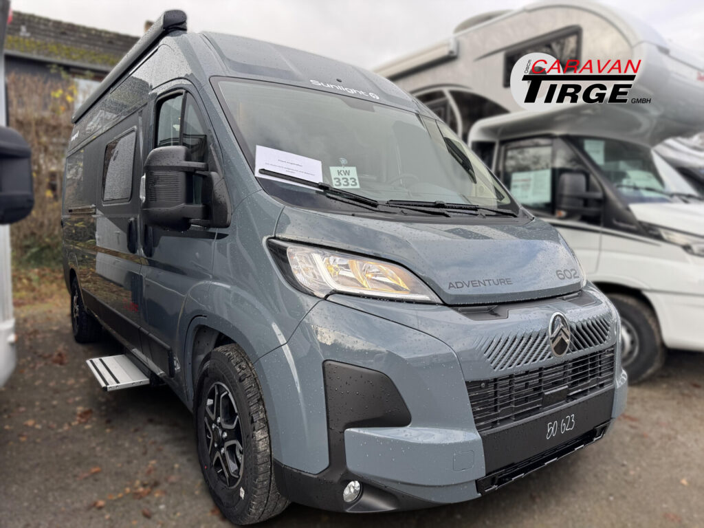 - Adventure Ausstattung 602 (Citroën Jumper 3.500 kg | 2.2 | 103 kW | 140 PS Euro 6 | 6-Gang-Schaltgetriebe, Citroën Weiß, Adventure Beklebung, Wohnwelt Adventure, Markise (schwarz), Panoramadachhaube 70 x 50 cm, Duschausstattung, Fenster im Bad, Kleiderstange in der Nasszelle, Breite Einstiegsstufe, Drehplatte für Tischerweiterung an der Sitzgruppe, Stoßfänger lackiert, Skid Plate Schwarz, Nebelscheinwerfer, Lenkrad & Schaltknauf in Lederausführung, Luftauslässe mit Applikationen Silber (Techno-Trim), 16″ Alufelgen Bi-Color)