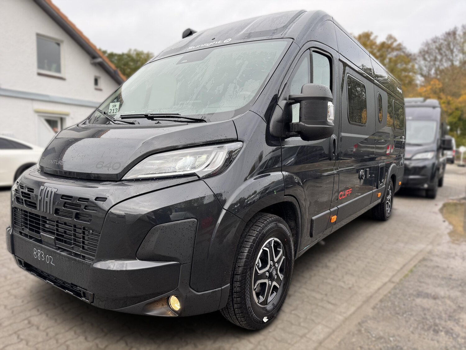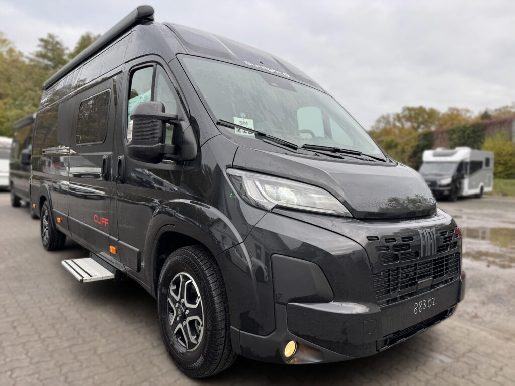 - Adventure Ausstattung 640 (Fiat Ducato 3.500 kg | 2.2 | 103 kW | 140 PS Euro 6 | 6-Gang-Schaltgetriebe, Fiat Weiß, Adventure Beklebung, Wohnwelt Adventure, Markise (schwarz), Panoramadachhaube 70 x 50 cm, Duschausstattung, Fenster im Bad, Kleiderstange in der Nasszelle, Breite Einstiegsstufe, Drehplatte für Tischerweiterung an der Sitzgruppe, Stoßfänger lackiert, Skid Plate Schwarz, Nebelscheinwerfer, Lenkrad & Schaltknauf in Lederausführung, Luftauslässe mit Applikationen Silber (Techno-Trim), 16″ Alufelgen Bi-Color)