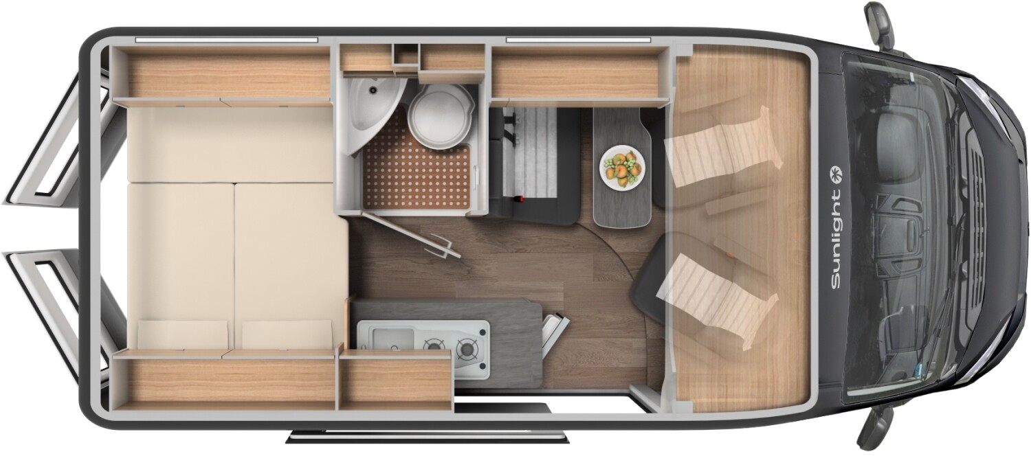 - Adventure Edition (Fiat Ducato 3,5 t – 2.2 Multijet – 103 kW / 140 PS Euro 6 – 6-Gang-Schaltgetriebe, Schlafdach, Wohnwelt Adventure, Adventure Abklebung, Fiat Weiß, Stoßfänger lackiert, 16″ Alufelgen Original FIAT für Light-Chassis, Markise, Dieseltank 90 l, Kabelvorbereitung für Rückfahrkamera, Scheinwerfer mit schwarzem Rahmen, Basic Paket (Radiovorbereitung mit Lautsprechern und Dachantenne (DAB), Beifahrersitz höhenverstellbar, Captain-Chair inkl. 2 Armlehnen, Duschausstattung (Brausekopf ausziehbar, Duschvorhang, Führungsschiene, Brausehalter), Fenster im Bad, Fahrerhausverdunklung aus Stoff, Breite Einstiegsstufe, Fliegengittertüre, Drehplatte für Tischerweiterung an der Sitzgruppe), Style Paket (Lenkrad & Schaltknauf in Lederausführung, Luftauslässe mit Applikationen Silber (Techno-Trim), Kühlergrill schwarz glänzend))