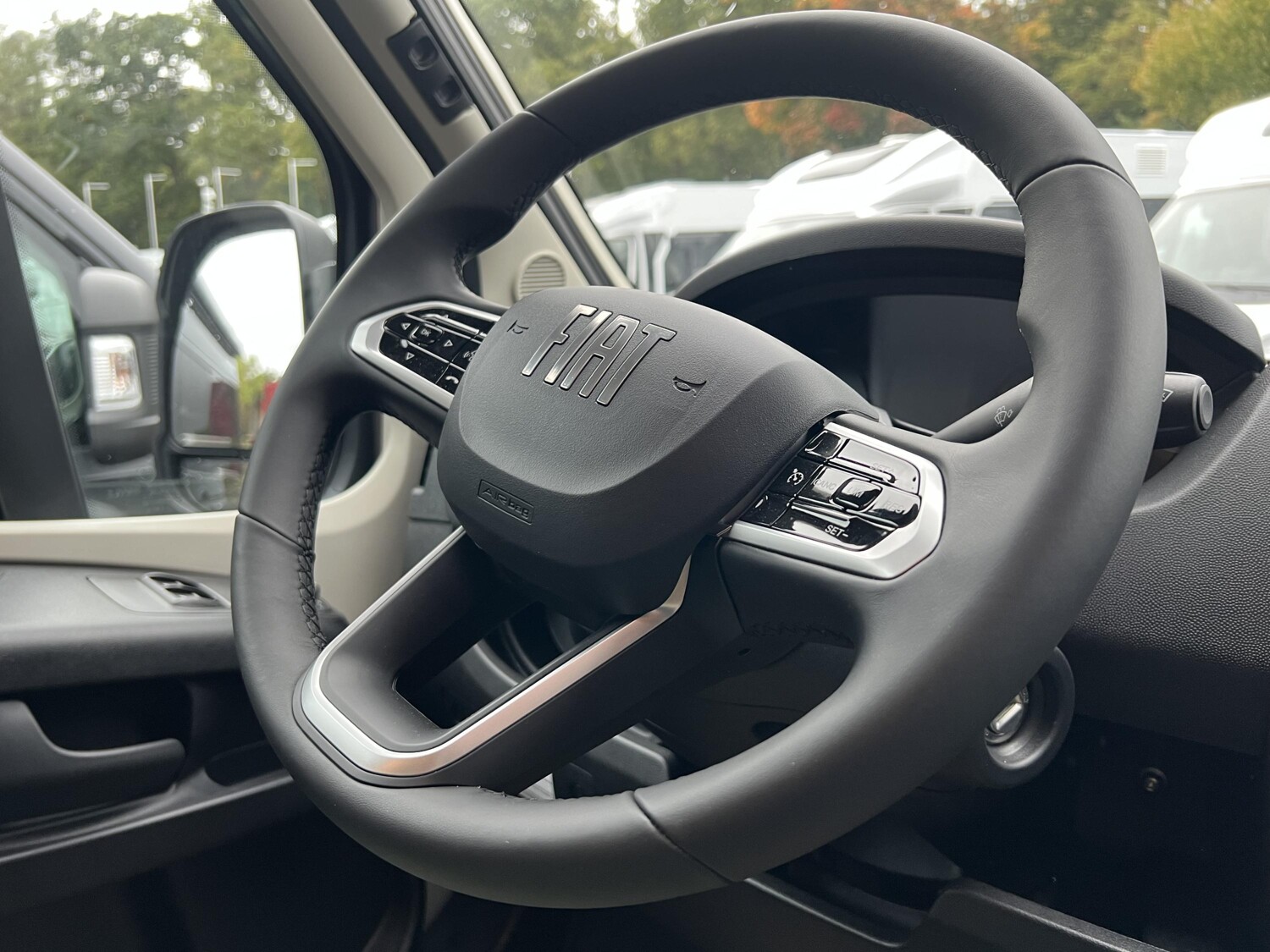- Adventure-Ausstattung (Fiat Ducato 3.500 kg, 2.2 Multijet, 103 kW, 140 PS Euro 6, 6-Gang-Schaltgetriebe, Fiat Weiß, Adventure Beklebung, Wohnwelt Adventure, Design Applikation Heck, Fenster in Fronthaube, Rahmenfenster, 2. Außenstauraumklappe (Größe modellabhängig), Großer Kühlschrank 156 l mit separatem Frosterfach 29 l, Bettenumbau Einzelbett zu Doppelbett, Paket One Black (Markise, Fahrradträger 3-fach), Basic Paket (Bridge Light, Komfort Eingangstür mit Fenster, Fliegengittertür (einteilig), Panoramadachhaube 70 x 50 cm, Klarglasdachhaube 40 x 40 cm), Paket Stoßfänger lackiert (Stoßfänger lackiert, Skid Plate Schwarz, Nebelscheinwerfer), Paket Alufelgen Bi-Color (Lenkrad & Schaltknauf in Lederausführung, Luftauslässe mit Applikationen Silber (Techno-Trim), 16″ Alufelgen Bi-Color))