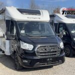 - Adventure Ausstattung 670S (Ford Transit 3.500 kg | 2.0 | 96 kW | 130 PS | Euro 6 | 6-Gang-Schaltgetriebe, Black Metallic, 16″ Alufelgen schwarz, Seitenwand Silber Glattblech, Adventure Beklebung, Wohnwelt Adventure, Design Applikation Heck, Fenster in Fronthaube, Rahmenfenster, 2. Außenstauraumklappe (Größe modellabhängig), Großer Kühlschrank 156 l mit separatem Frosterfach 29 l, Bettenumbau Einzelbett zu Doppelbett, Paket One Black (Markise, Fahrradträger 3-fach), Bridge Light, Komfort Eingangstür mit Fenster, Fliegengittertür (einteilig), Panoramadachhaube 70 x 50 cm, Klarglasdachhaube 40 x 40 cm, Klimaanlage inkl. Staub- und Pollenfilter, Stoßfänger lackiert, Nebelscheinwerfer, Scheinwerfer mit statischem Abbiegelicht)