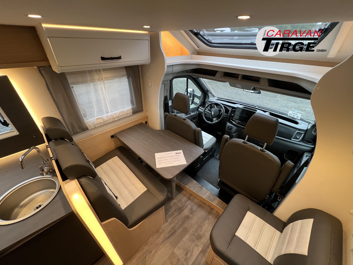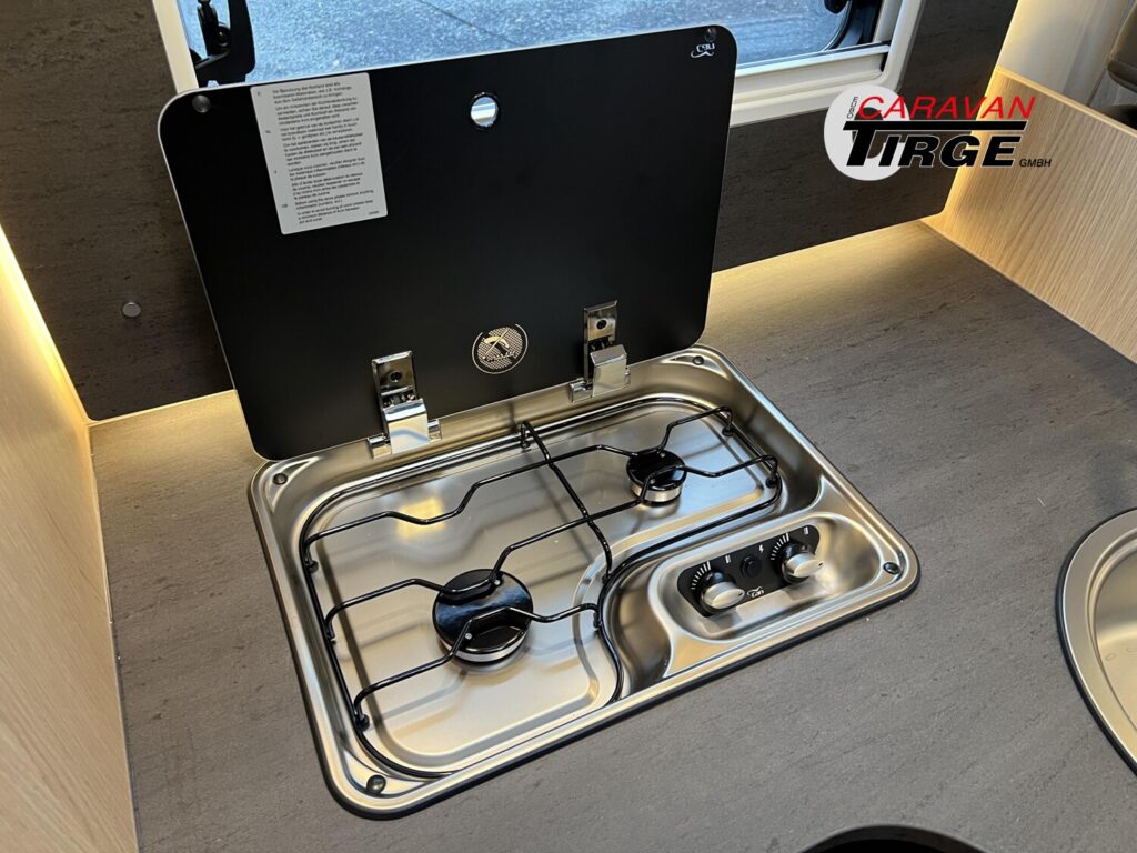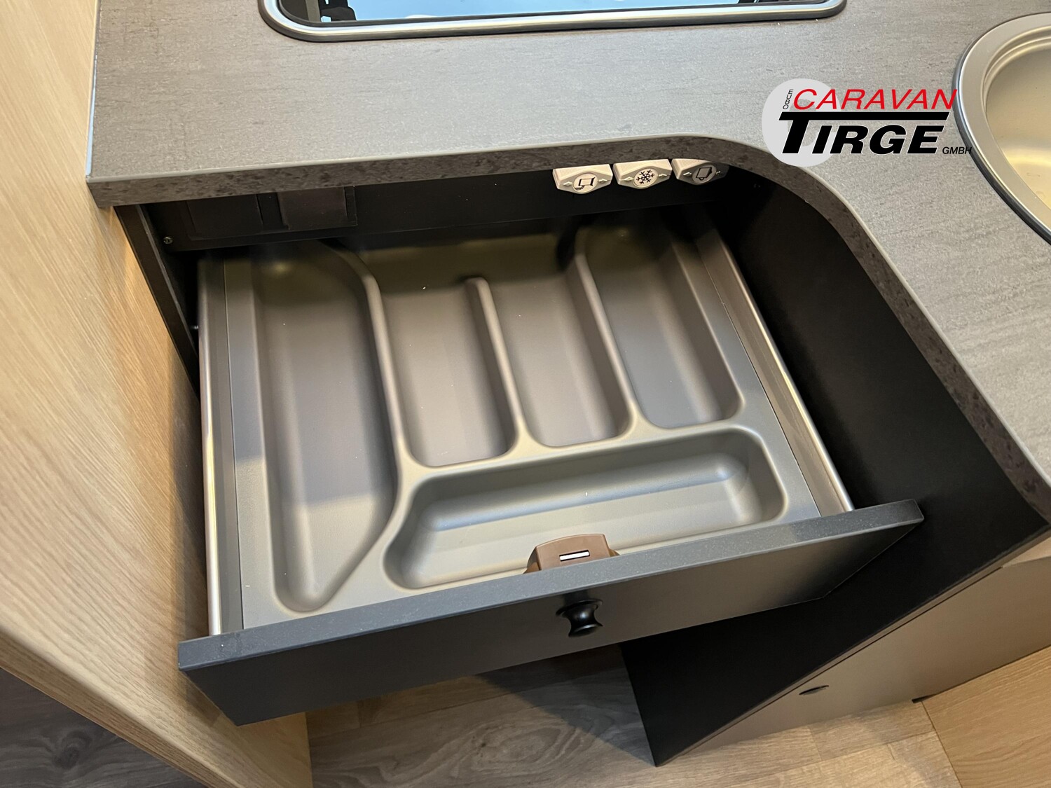 - Adventure-Ausstattung (Ford Transit 3.500 kg, 2,0l TDCi, 96 kW, 130 PS, Euro 6, 6-Gang-Schaltgetriebe, Black Metallic, 16″ Alufelgen schwarz, Seitenwand Silber Glattblech, Adventure Beklebung, Wohnwelt Adventure, Design Applikation Heck, Fenster in Fronthaube, Rahmenfenster, 2. Außenstauraumklappe (Größe modellabhängig), Großer Kühlschrank 156 l mit separatem Frosterfach 29 l, Bettenumbau Einzelbett zu Doppelbett, Paket One Black (Markise, Fahrradträger 3-fach), Basic Paket (Bridge Light, Komfort Eingangstür mit Fenster, Fliegengittertür (einteilig), Panoramadachhaube 70 x 50 cm, Klarglasdachhaube 40 x 40 cm), Chassis Paket (Klimaanlage inkl. Staub- und Pollenfilter, Stoßfänger lackiert, Nebelscheinwerfer, Scheinwerfer mit statischem Abbiegelicht))
