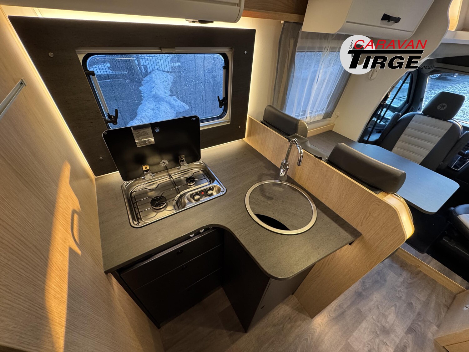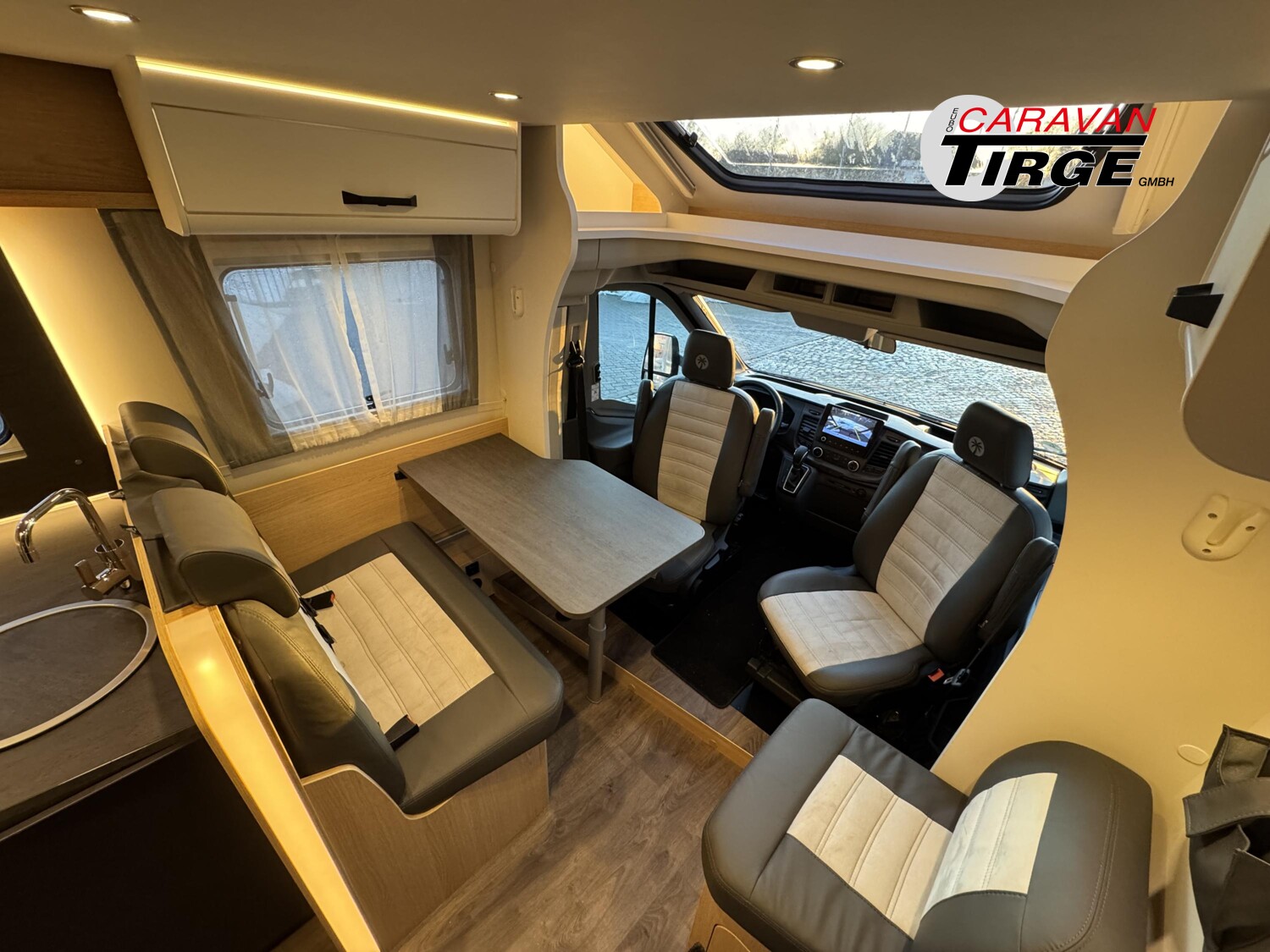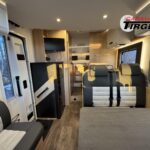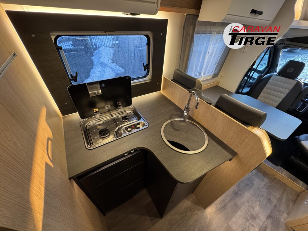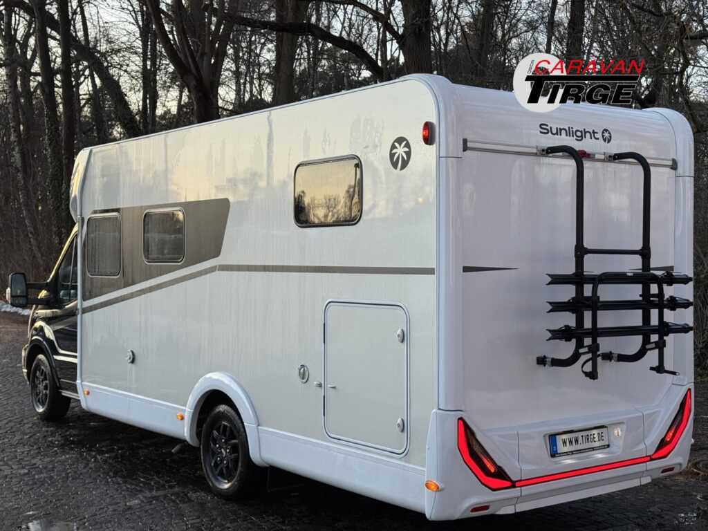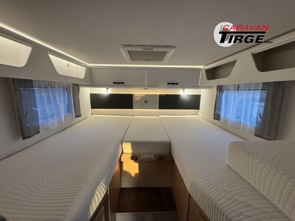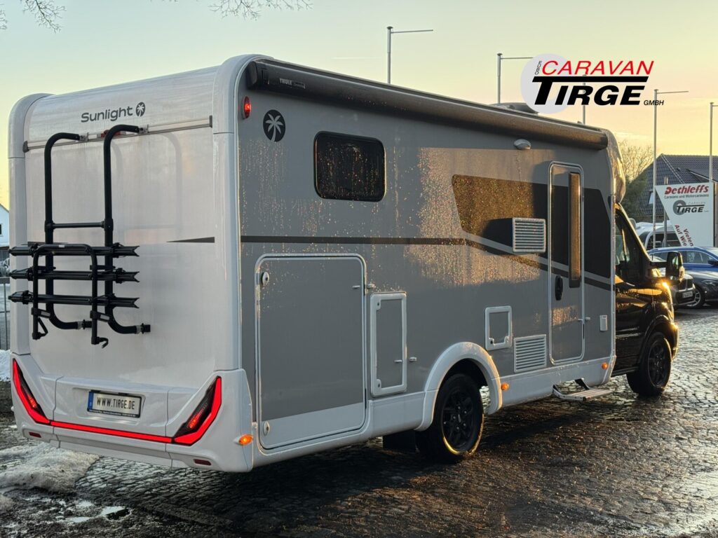 - Adventure Edition (Ford Transit 3.500 kg – 2,0l TDCi – 96 kW (130 PS) – Euro VI E – 6-Gang-Schaltgetriebe, Obsidian Schwarz, Seitenwand Silber Glattblech, 16″ Alufelgen schwarz, Paket One Black (Markise, Fahrradträger 3-fach), Wohnwelt Adventure, Adventure Abklebung, Großer Kühlschrank 156 l mit separatem Frosterfach 29 l, Rahmenfenster, Fenster in T-Haube, Design Applikation Heck, 2. Außenstauraumklappe (Größe modellabhängig), Bettenumbau Einzelbett zu Doppelbett, Bettenumbau im Bereich Sitzgruppe (T 690 L), Basic Paket Teilintegrierte (Bridge Light, Komfort Eingangstür mit Fenster, Fliegengittertür (einteilig), Panormadachhaube über Küche, Klarglasdachhaube 40×40, Kabelvorbereitung für Rückfahrkamera), Chassis Paket (Klimaanlage inkl. Staub- und Pollenfilter, Handschuhfach mit Deckel, zusätzlich abschließbar, Stoßfänger lackiert, Nebelscheinwerfer, Scheinwerfer mit statischem Abbiegelicht, Seitenschutzleisten in Wagenfarbe lackiert))