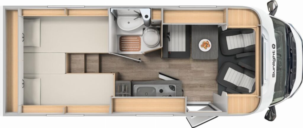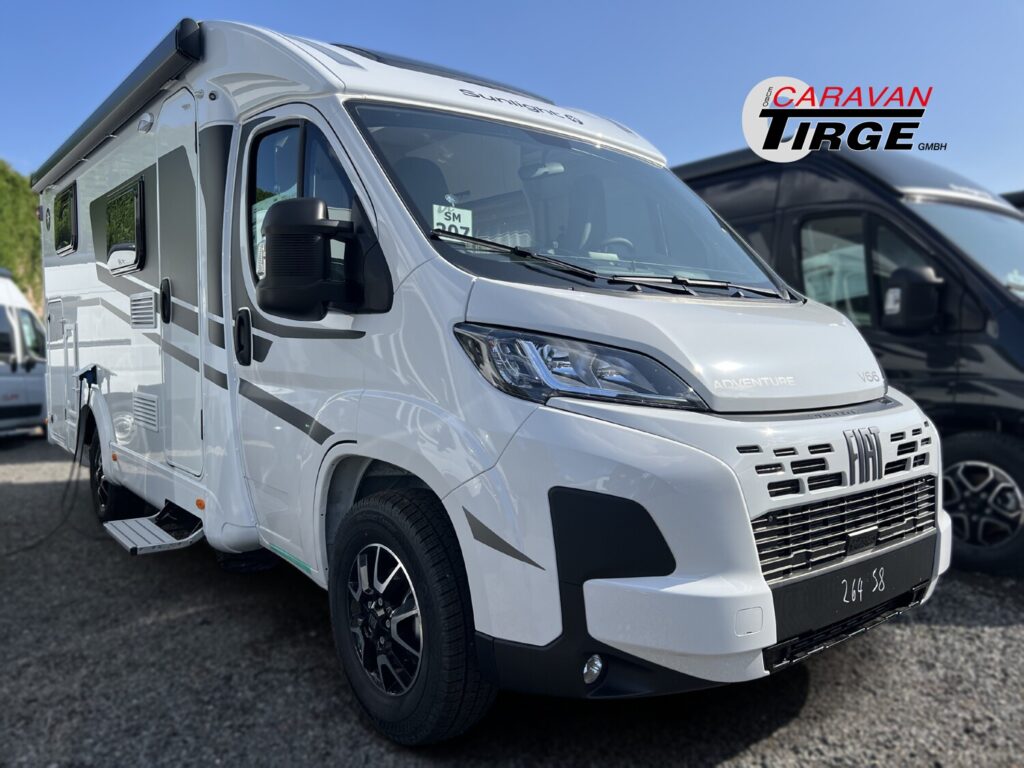 - Editionsausstattung Adventure 66 (Fiat Ducato 3.500 kg | 2.2 Multijet | 103 kW | 140 PS Euro 6 | 6-Gang-Schaltgetriebe, Chassisfarbe Weiß, Adventure Beklebung, Wohnwelt Adventure, Fenster in Fronthaube, 2. Außenstauraumklappe (Größe modellabhängig), Bettenumbau Einzelbett zu Doppelbett, Paket One Black (Markise, Fahrradträger 3-fach), Bridge Light, Fliegengittertür (einteilig), Spiegel mit Garderobenhaken, Panoramadachhaube 70 x 50 cm, Klarglasdachhaube 40 x 40 cm, Stoßfänger lackiert, Skid Plate Schwarz, Nebelscheinwerfer, Lenkrad & Schaltknauf in Lederausführung, Luftauslässe mit Applikationen Silber (Techno-Trim), 16″ Alufelgen Bi-Color)