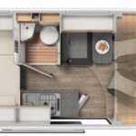 - Basic Paket (Panoramadachhaube 70 x 50 cm, Duschausstattung, Fenster im Bad, Kleiderstange in der Nasszelle, Breite Einstiegsstufe, Drehplatte für Tischerweiterung an der Sitzgruppe)