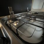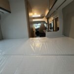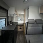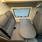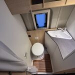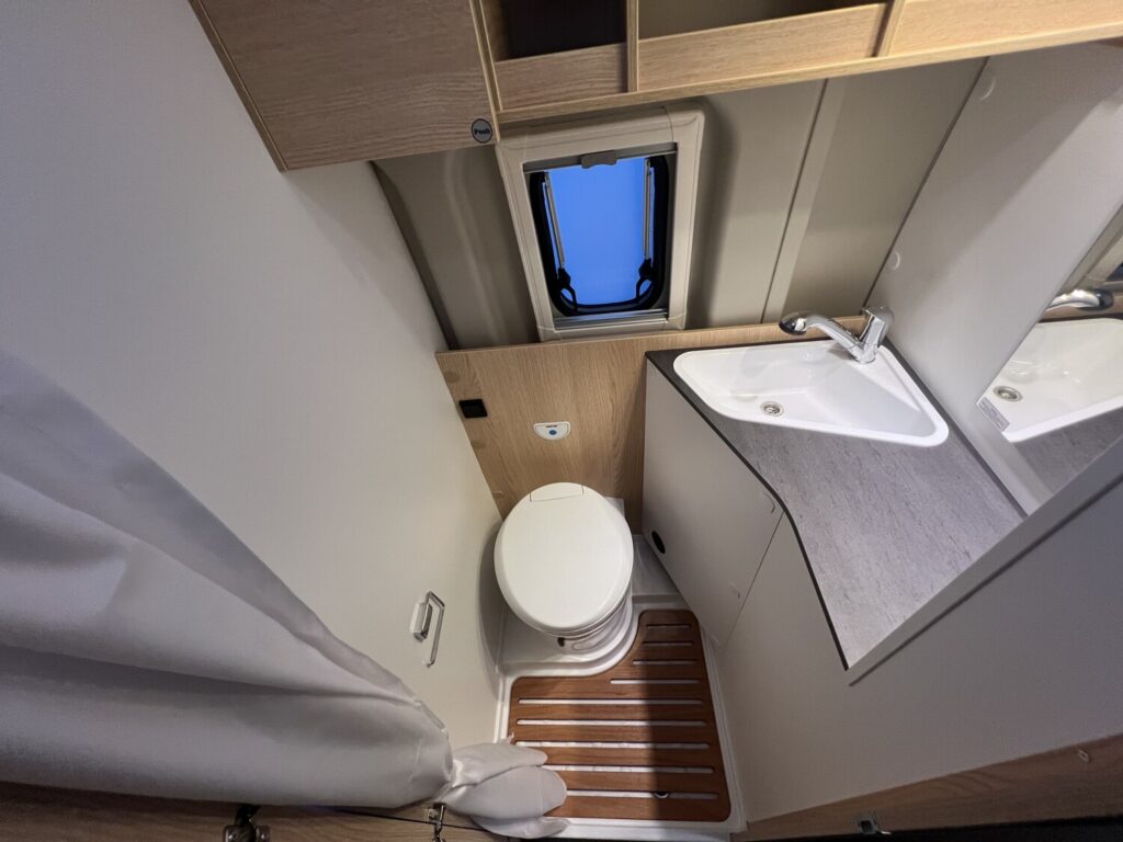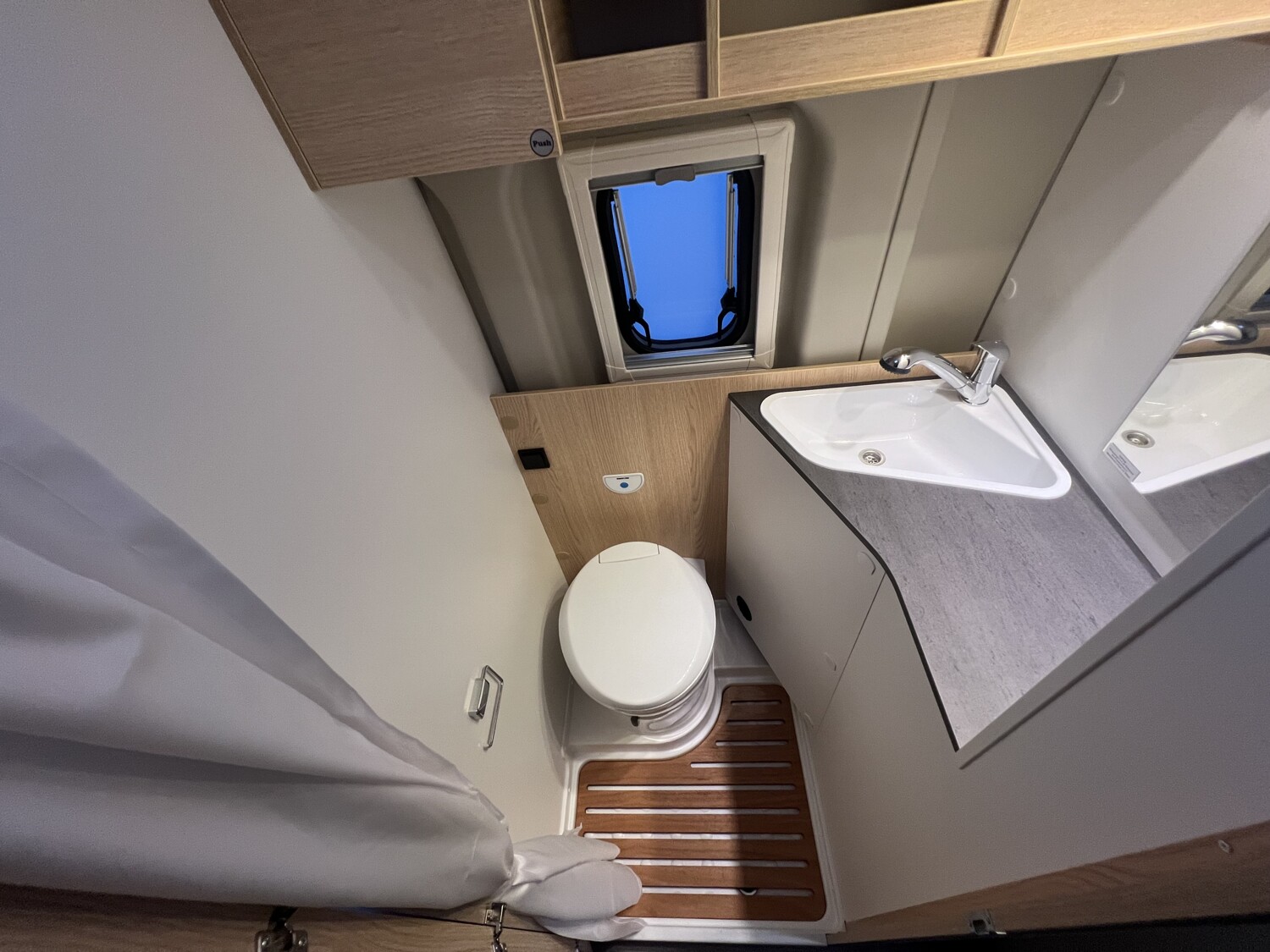 - Basic Paket (Panoramadachhaube 70 x 50 cm, Duschausstattung (Brausekopf ausziehbar, Duschvorhang, Führungsschiene, Brausehalter), Fenster im Bad, Kleiderstange in der Nasszelle, Breite Einstiegsstufe, Drehplatte für Tischerweiterung an der Sitzgruppe)